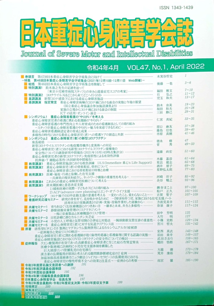 論文「重症心身障害者における骨粗鬆症の特徴と治療」 2022/4/1発行(日本重症心身障害学会) 肢体不自由児施設勤務の時に、重症心身障害者がほとんどすべて骨粗鬆症であることを確認しました。たいした力を加えたわけでもないのに、骨折を生じ、それにあたった職員は大きなショックを受けます。私は大学院にて骨粗鬆症の研究をしており、日本骨粗鬆症学会認定専門医でもあります。YAM50%にも満たない骨粗鬆症が当たり前のように、目の前で苦しんでいる。これに立ち向かった戦いの全貌を込めた論文になります。どうしようもないと放置されることなく、積極的に安全な薬物療法を行っていただきたいものです。 |