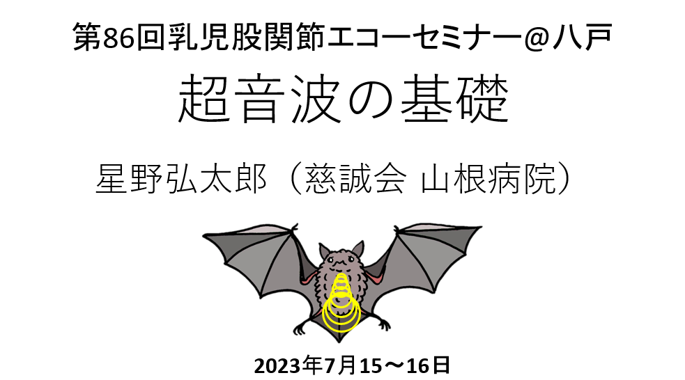| 2023/7/15講演(青森県) 第86回乳児股関節エコーセミナーが青森で7月15-16日に弘前大学整形 山本裕司会長のもと開催され、講師として参加いたしました。私はセミナー概要、超音波の基礎、股関節の解剖について講演いたしました。 |