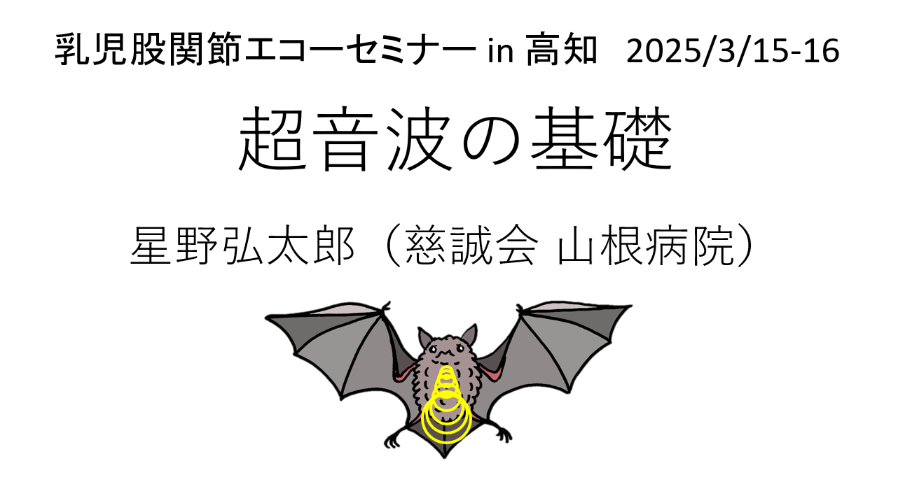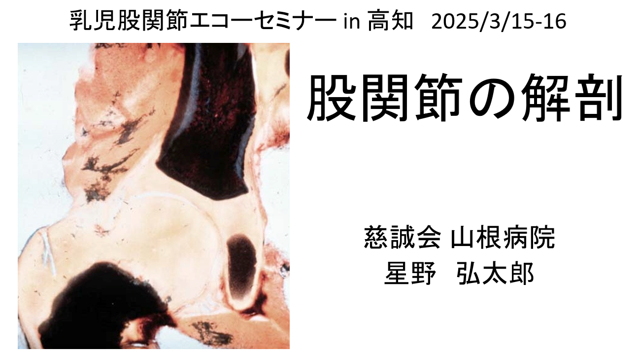 | 2025/3/15講演(高知県) 第90回乳児股関節エコーセミナーが高知で3月15-16日に高知県立療育福祉センター三宮奈穂会長のもと開催され、講師として参加いたしました。私はセミナー概要、超音波の基礎、股関節の解剖について講演いたしました。 |