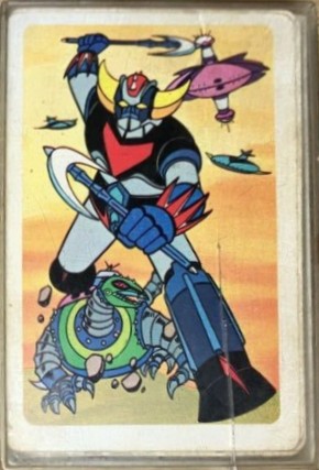 「マジンガーZ」 バッタもんのかおりただよう(笑)。 18種類の絵がそれぞれ3分割されてて,3〜5人で 配って絵を合わせていくゲーム。 価格は200円。 |