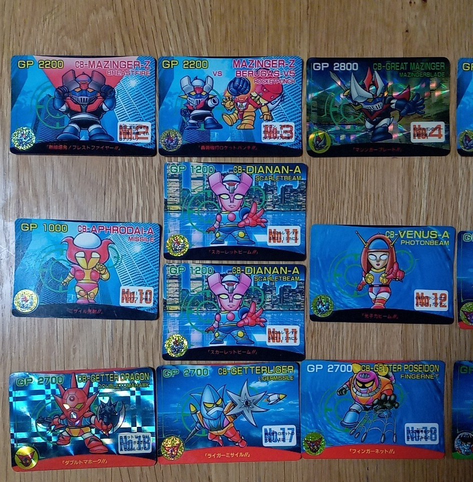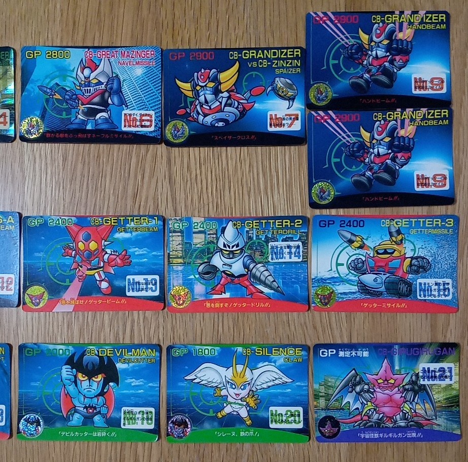 No.1 CB-マジンガーZ アイアンカッター 未 No.2 CB-マジンガーZ ブレストファイヤー No.3 CB-マジンガーZ 対CB-ベルガスV5 ロケットパンチ No.4 CB-グレートマジンガー マジンガーブレード(プリズム) No.5 CB-グレートマジンガー 対CB-オベリウス サンダーブレーク 未 No.6 CB-グレートマジンガー ネーブルミサイル No.7 CB-グレンダイザー 対CB-ジンジン スペイザー No.8 CB-グレンダイザー ダブルハーケン 未 No.9 CB-グレンダイザー ハンドビーム ✕2 No.10 CB-アフロダイA ミサイル No.11 CB-ダイアナンA スカーレットビーム ✕2 No.12 CB-ビューナスA 光子力ビーム No.13 CB-ゲッター1 ゲッタービーム No.14 CB-ゲッター2 ゲッタードリル No.15 CB-ゲッター3 ゲッターミサイル No.16 CB-ゲッタードラゴン ダブルトマホーク(プリズム) No.17 CB-ゲッターライガー ライガーミサイル No.18 CB-ゲッターポセイドン フィンガーネット No.19 CB-デビルマン デビルカッター No.20 CB-シレーヌ 爪 No.21 CB-ギルギルガン |