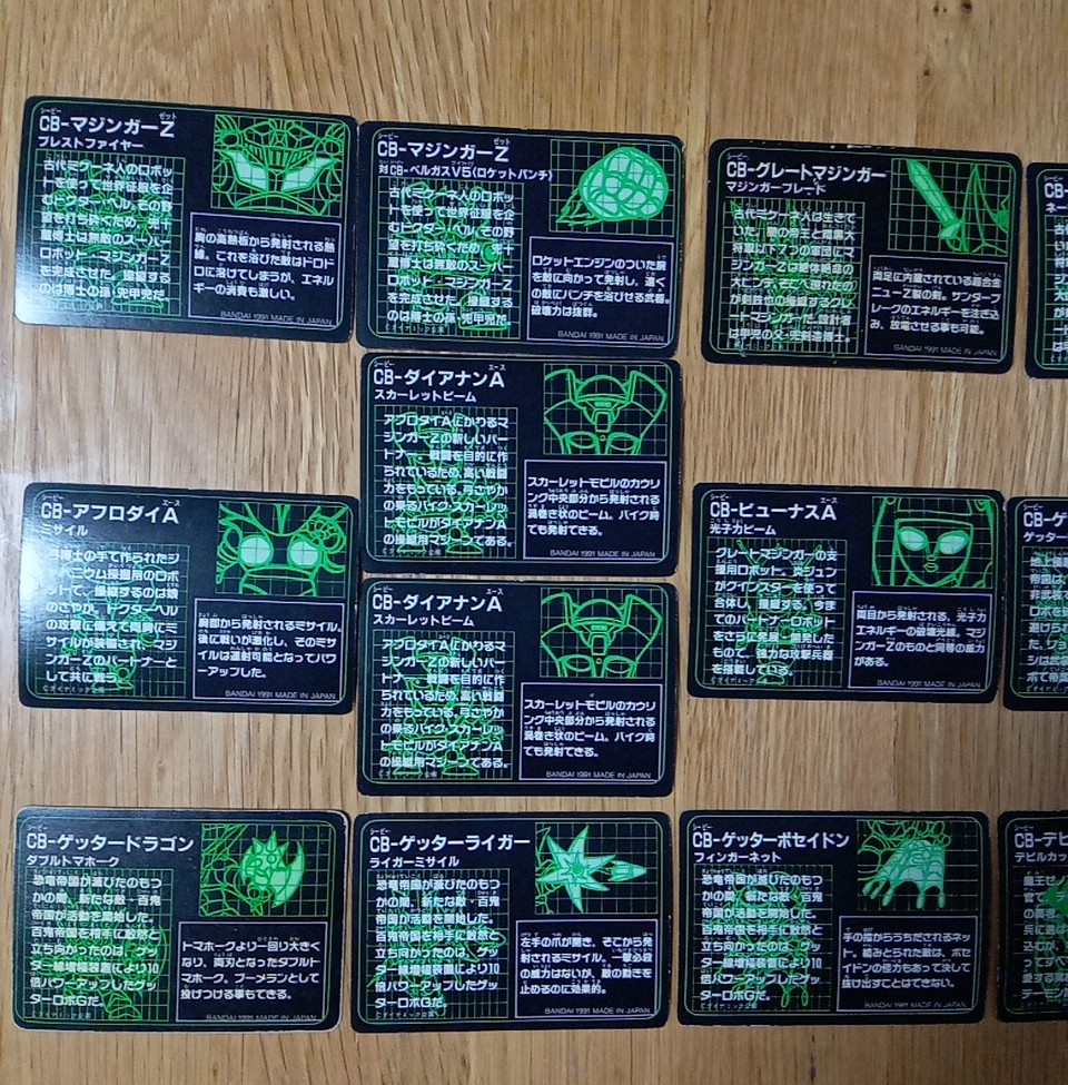 オープニングカード (9) 名場面カード (18) 機械獣カード (45) キャラクターカード (12) パズルカード (6) |