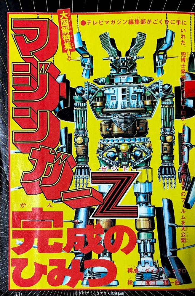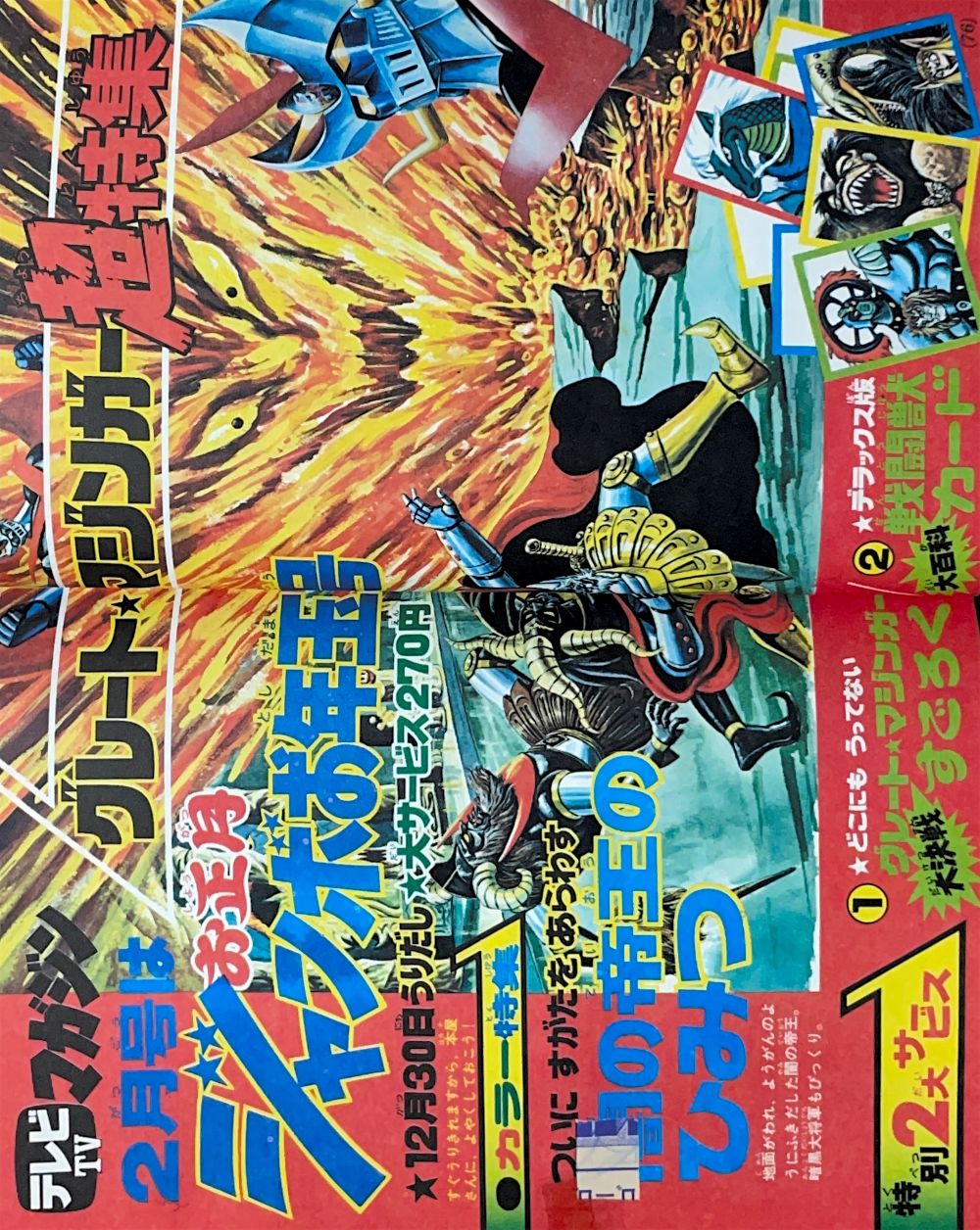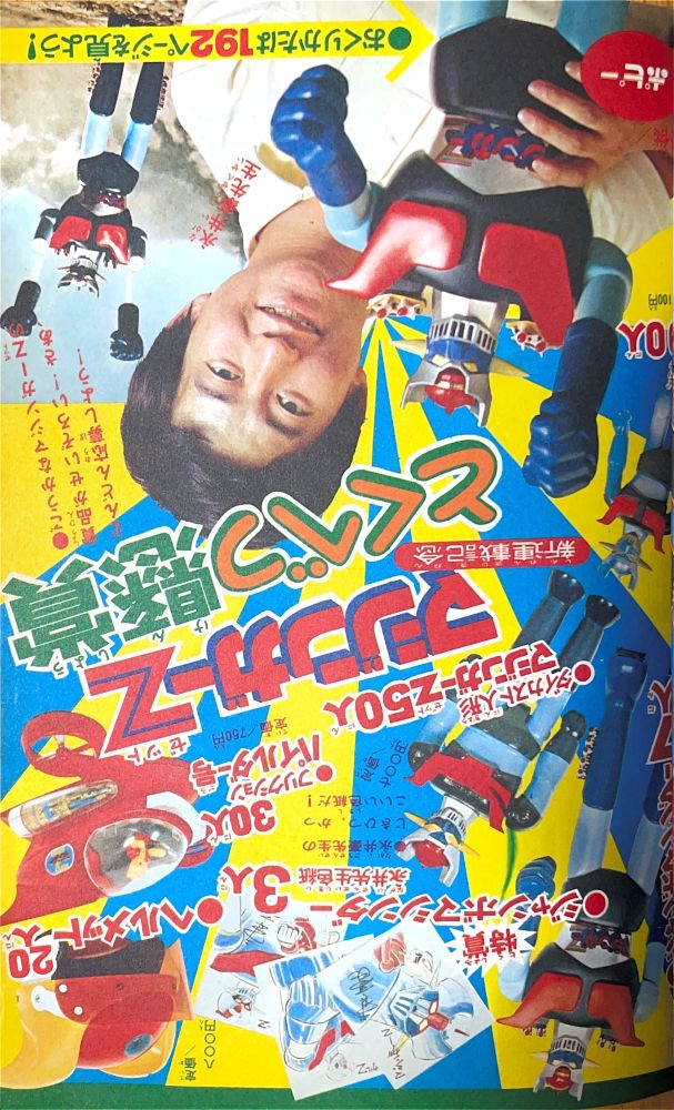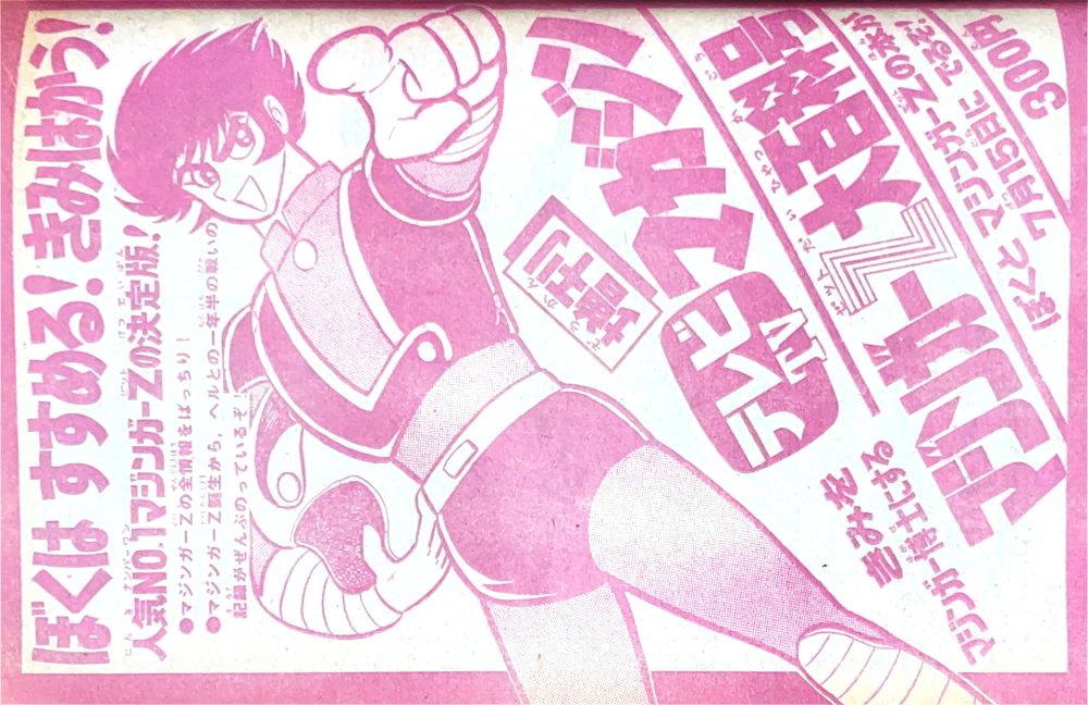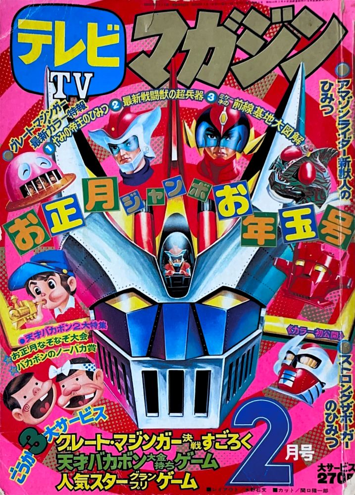 巻頭付録 マジンガーZ特大ポスター (カレンダーつき) ふろく人気ものカルタ 特 集マジンガーZの最新情報100!! マンガ天保革「マジンガーZ」扉4色 |