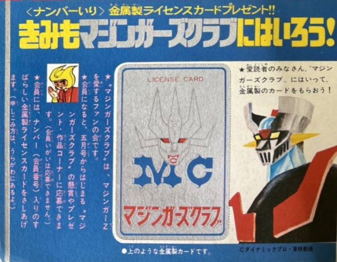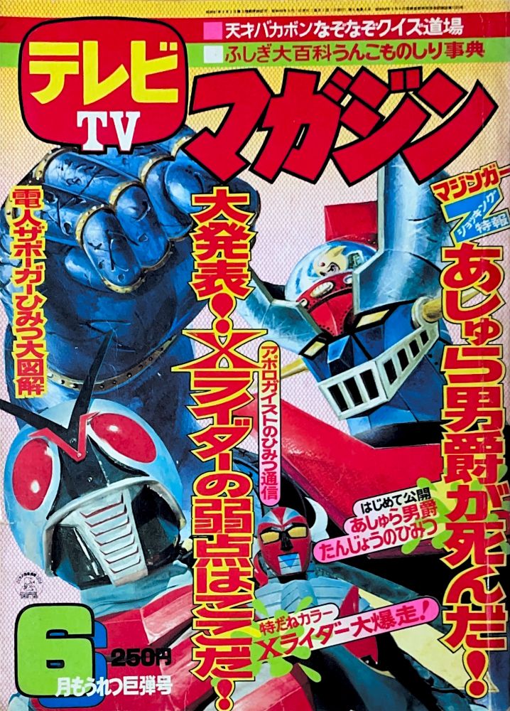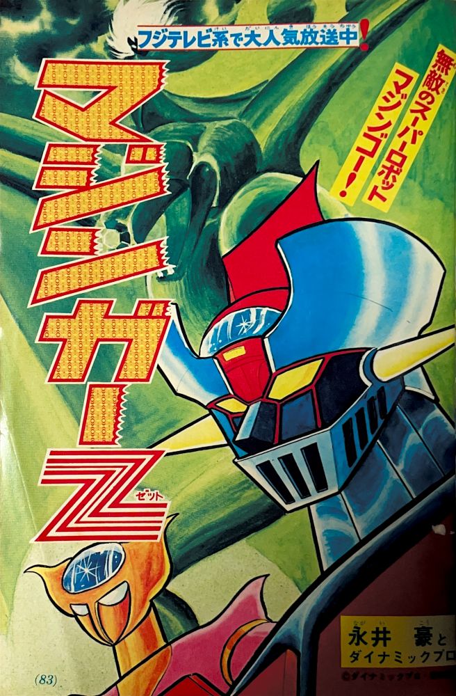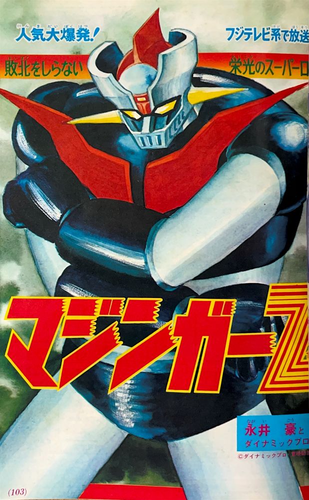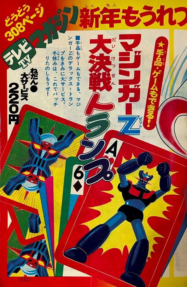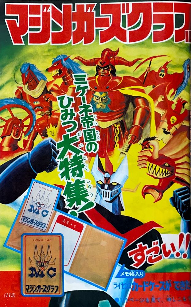巻頭付録 マジンガーZ特大ポスター (カレンダーつき) ふろく人気ものカルタ 特 集マジンガーZの最新情報100!! マンガ天保革「マジンガーZ」扉4色 |