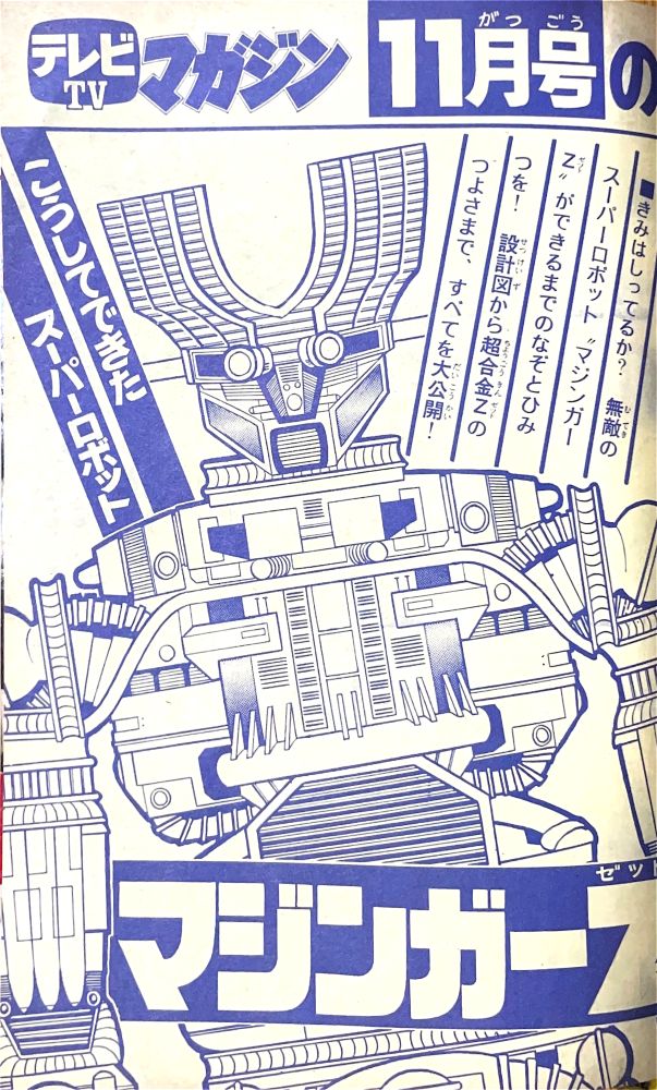 巻頭付録 マジンガーZときみのスケジュール表 カラー特集こうすればマジンガーZはもっと強くなる! 記 事「マジンガーZをころせ 悪の座談会」 記 事「マジンガーZができるまで」 |