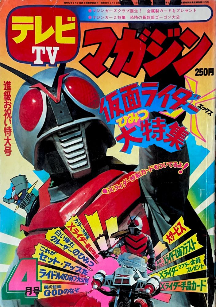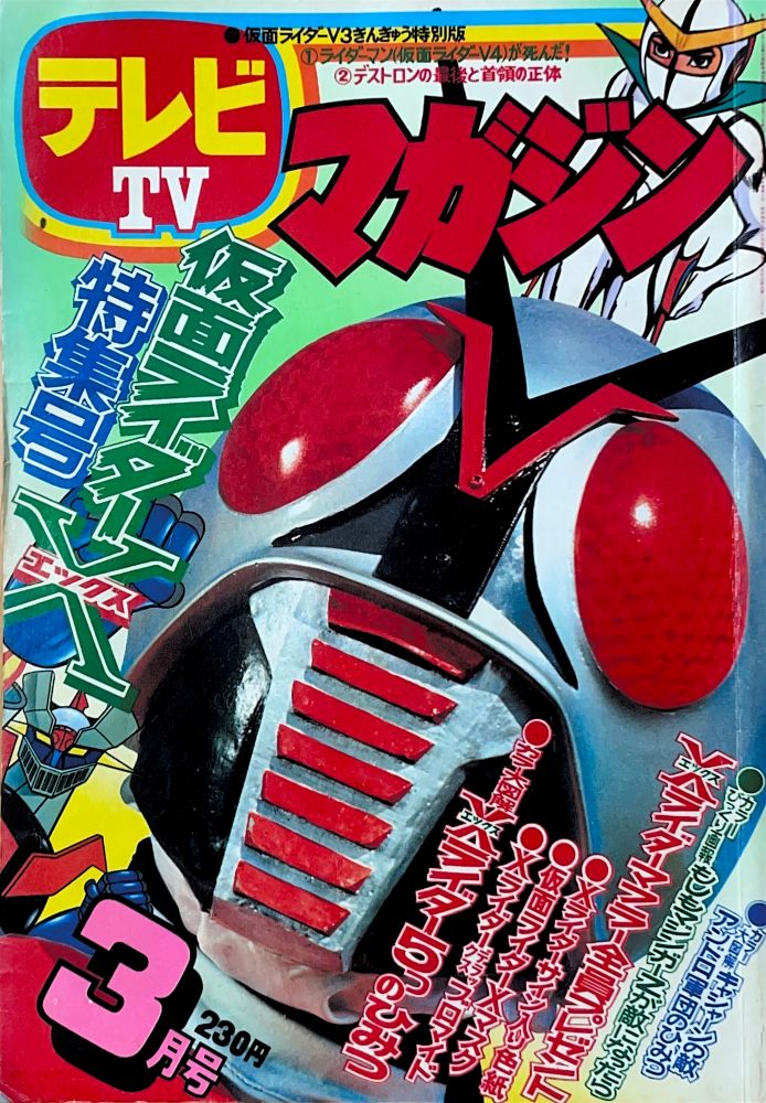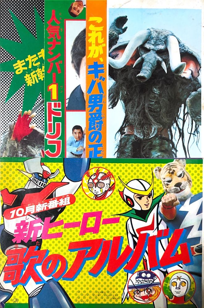 マンガ「ハゼドン」板井れんたろう マンガ「仮面ライダーV3」石森プロ マンガ「天才バカボン」赤塚不二夫 マンガ「流星人間ゾーン」新宅よしみつ(新連載) マンガ「レインボーマン」あだち充 マンガ「白獅子仮面」古城武司(新連載) マンガ「ロボット刑事」石森プロ(新連載) マンガ「バビル二世」松本めぐむ マンガ「電人Xマン」桑田次郎 マンガ「デビルマン」風子瞳12p(ドリムーン)最終話 |