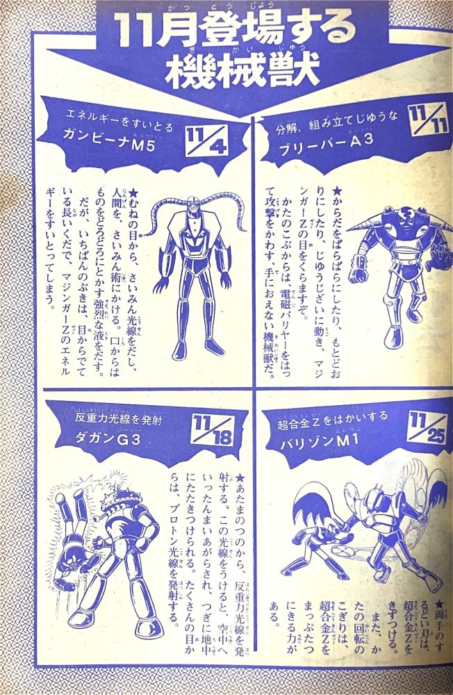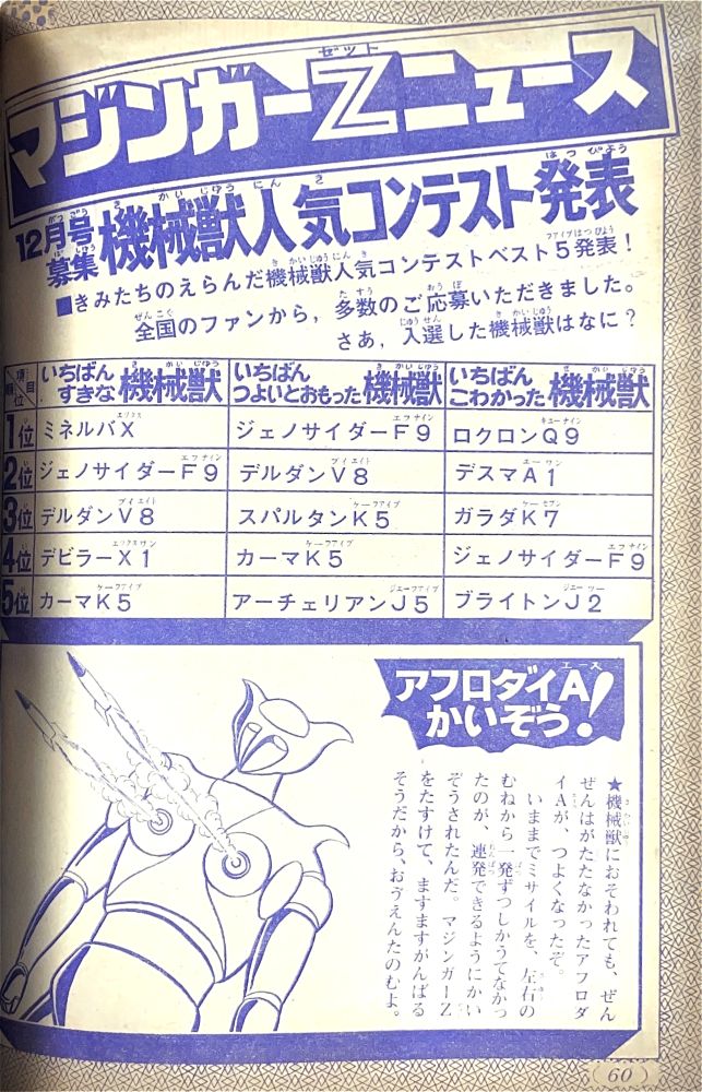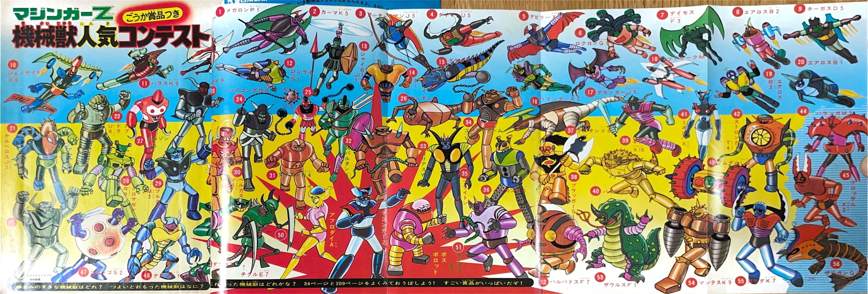 特 集「ごうか賞品つき マジンガーZ機械獣人気コンテスト」機械獣56体勢ぞろいのカラーピンナップ