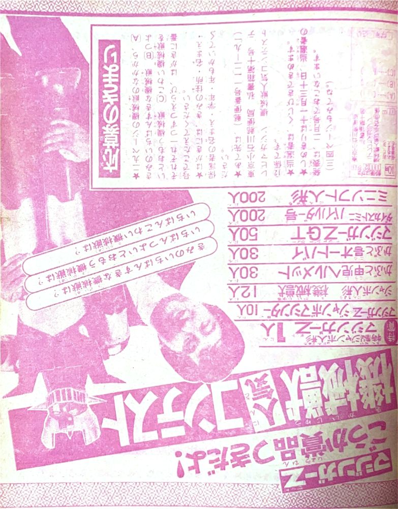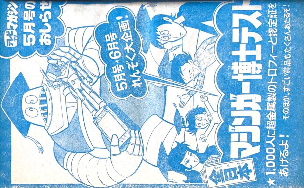 綴 込「マジンガーZ絵はがき」 綴 込「マジンガーZお面」 マンガ「マジンガーZ」(桜多吾作)新連載 マンガ「キューティーハニー」(石川賢)新連載 |