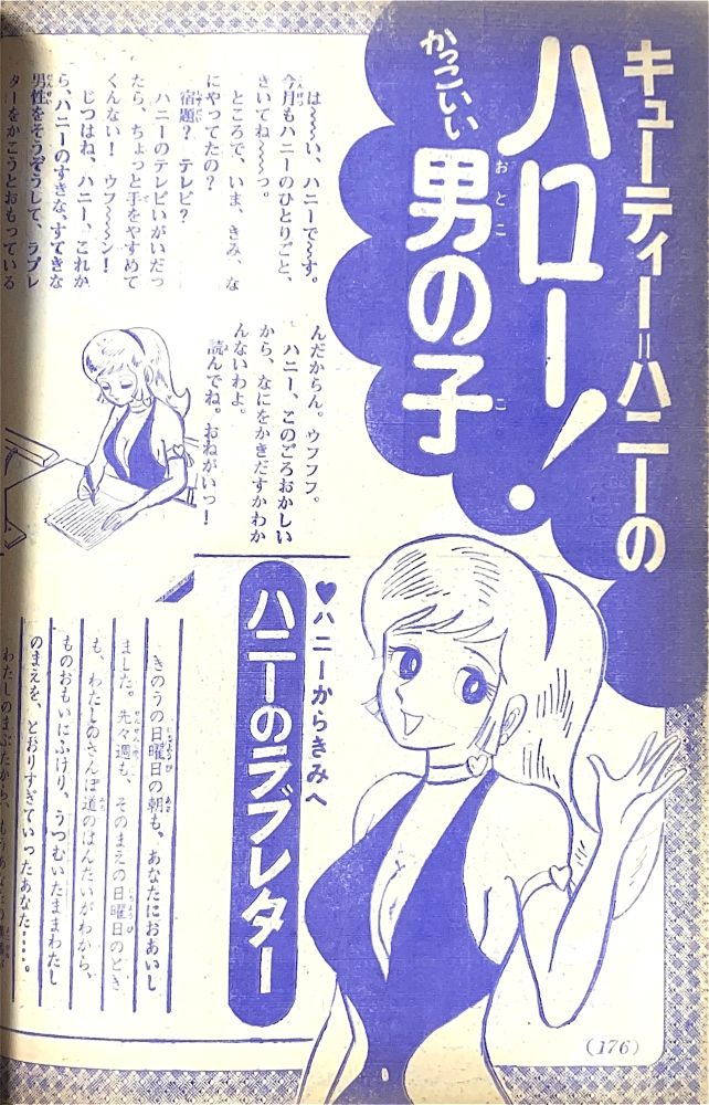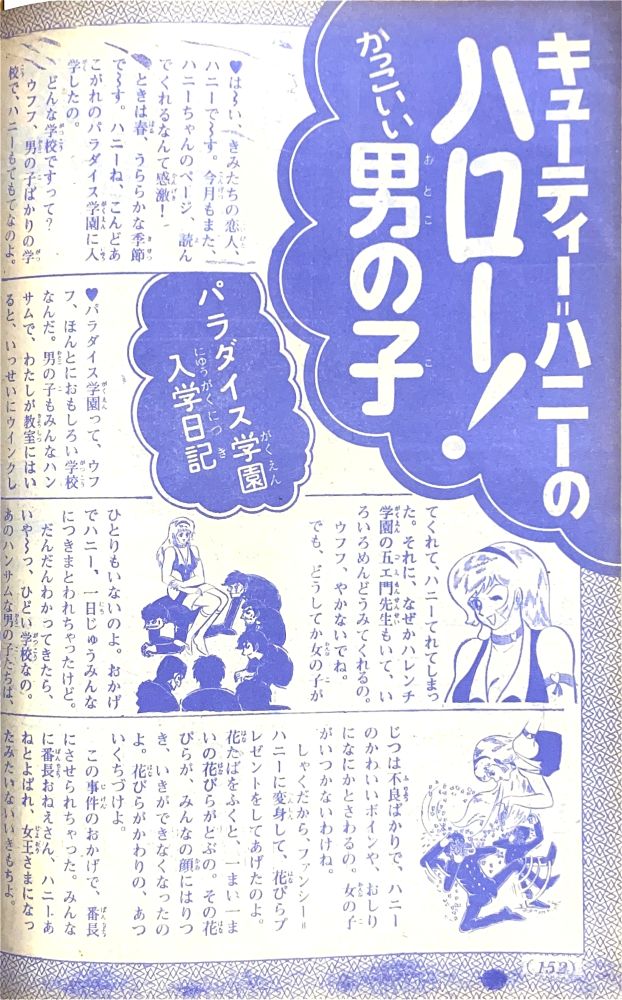 ふろく「お年玉クイズ絵はがき」欠 ふろく「マジンガーZ決戦トランプ」欠 特 集「マジンガーZ決戦大画報」(関口猪一郎)4色6p 特 集「ハニー!ハニー!キューティーハニー!」4色2p 記 事「キューティーハニーのハロー!かっこいい男の子」4p ハニーの身長は153cm,体重48kg,3サイズはB84/W49/H85だった! マジンガーZニュース「マジンガーZがスキーで大滑降!?」2p マンガ「マジンガーZ」26p(扉4色)/機械獣あしゅら男爵 扉4色 マンガ「キューティーハニー」(岡崎優)10p/ジャンボ=パンサー登場! |