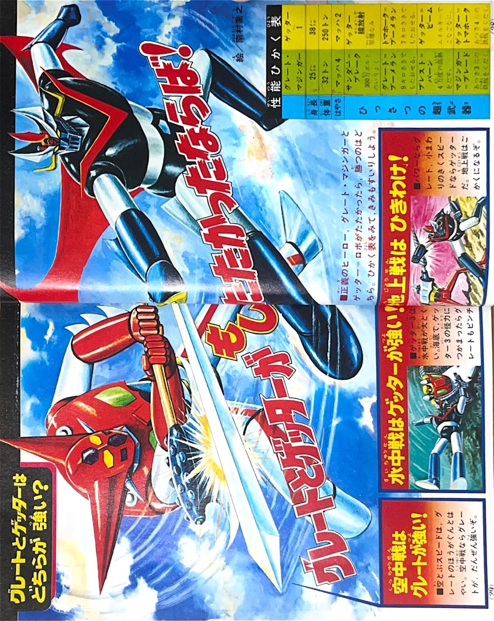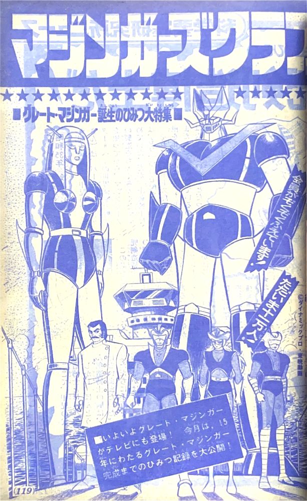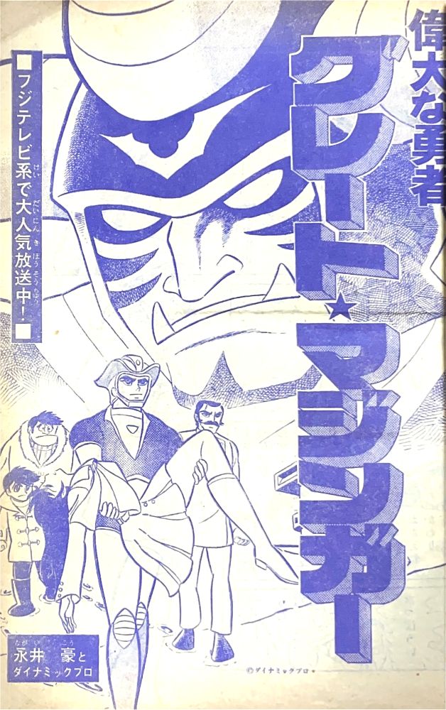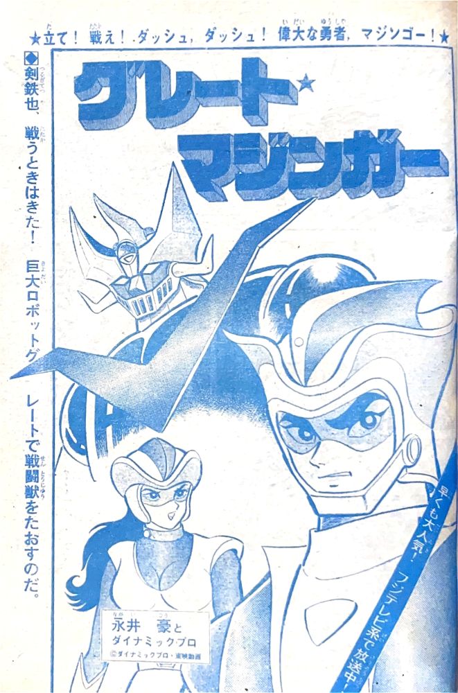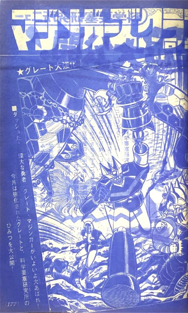 特 集「これがグレートの弱点だ!!」 特 集「改造完成ゲッターロボ」 マンガ「ゲッターロボ」蛭田充 マンガ「グレートマジンガー」今道英治! |