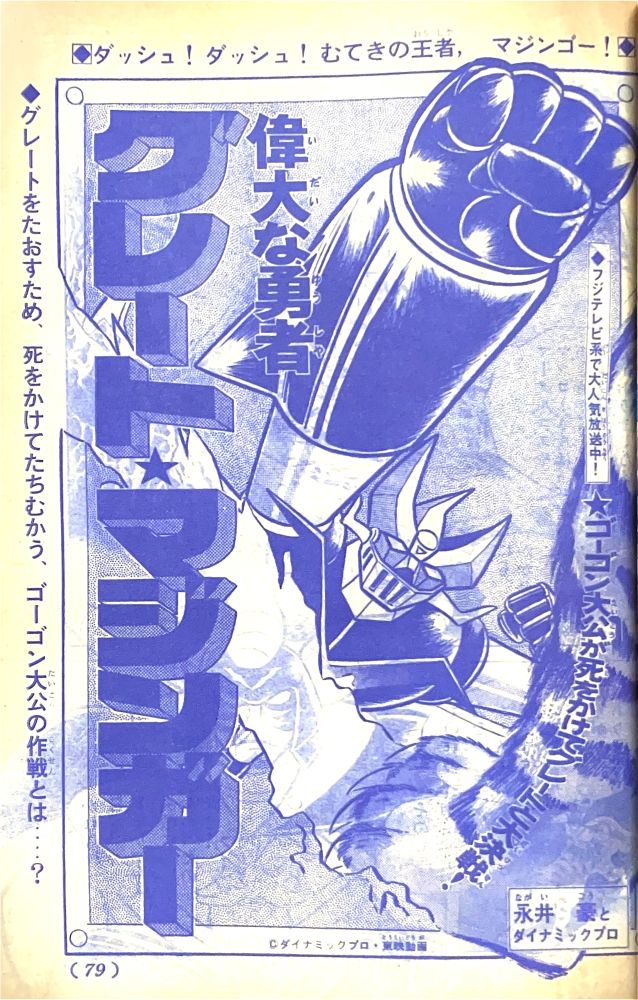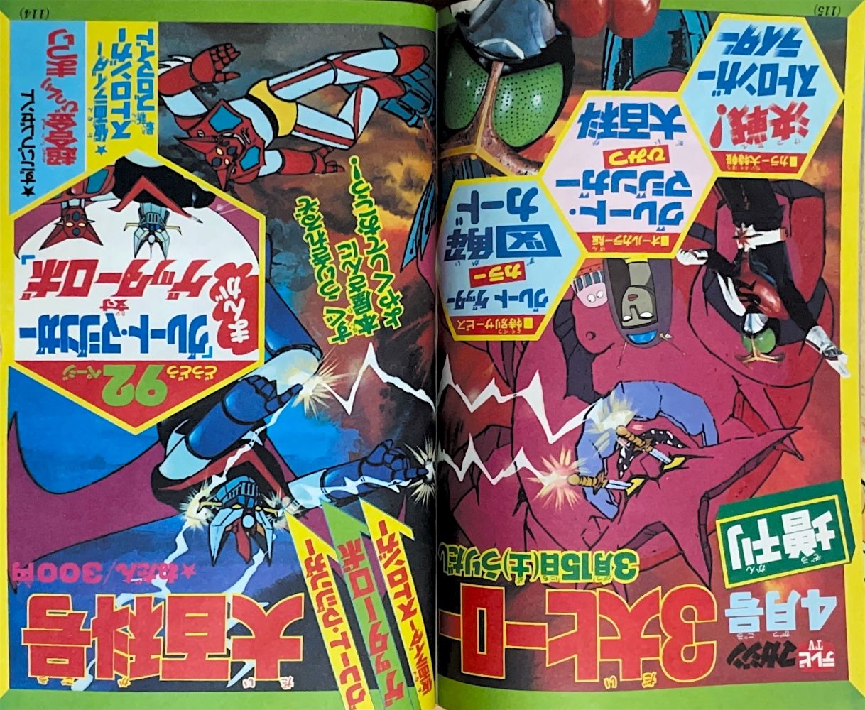 特 集「死闘!グレート対ミケーネ」 マンガ「ゲッターロボG」秋本シゲル 扉4色 マンガ「グレートマジンガー」今道英治 |