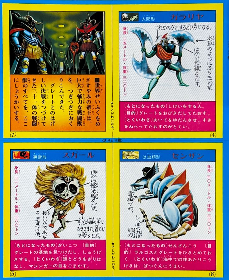 1. 無敵ロボ・トライダーG7(2p) 2. マジンガーZ(2p) 3. グレート・マジンガー(2p) 4. UFOロボ・グレンダイザー(2p) |