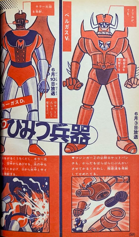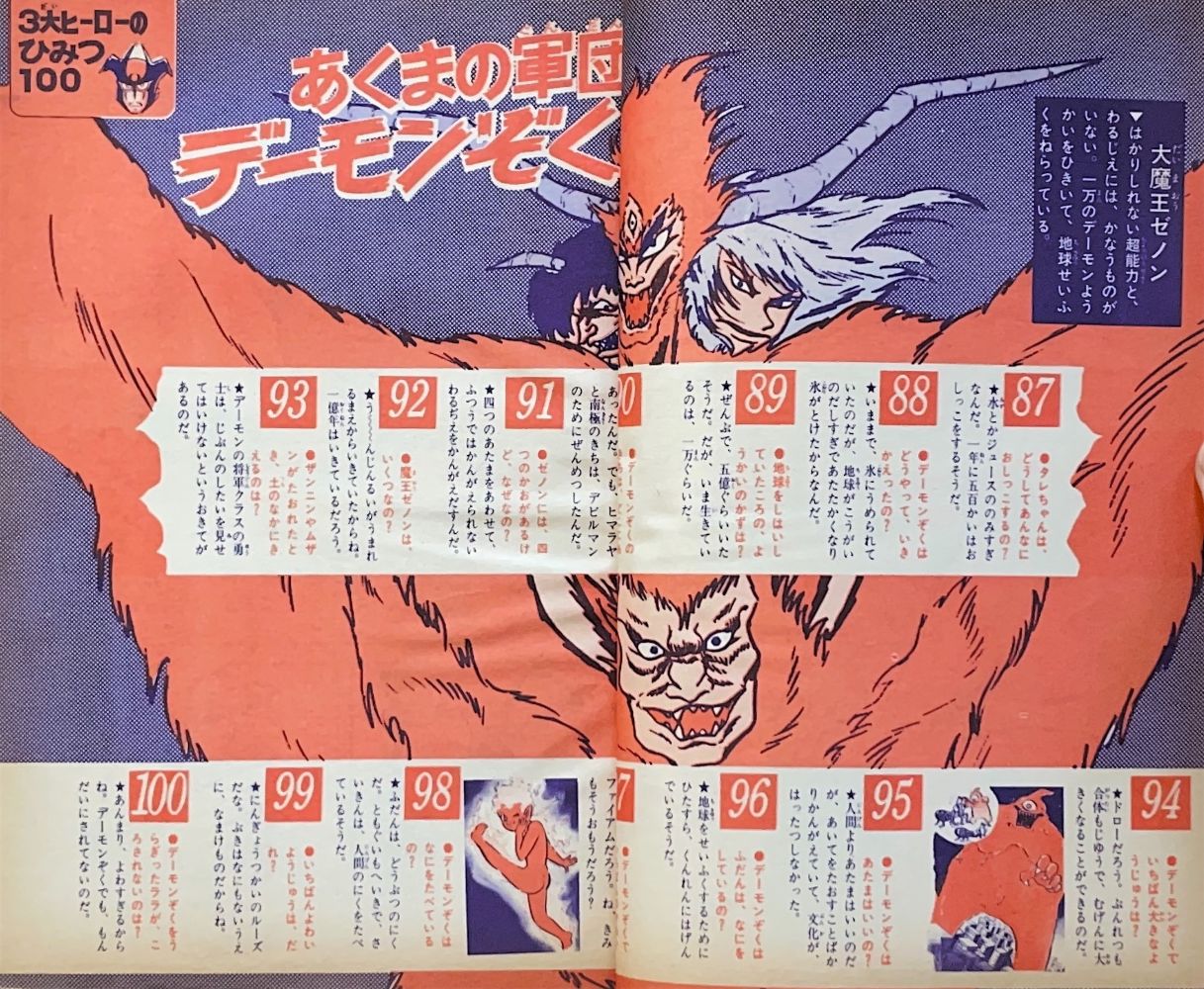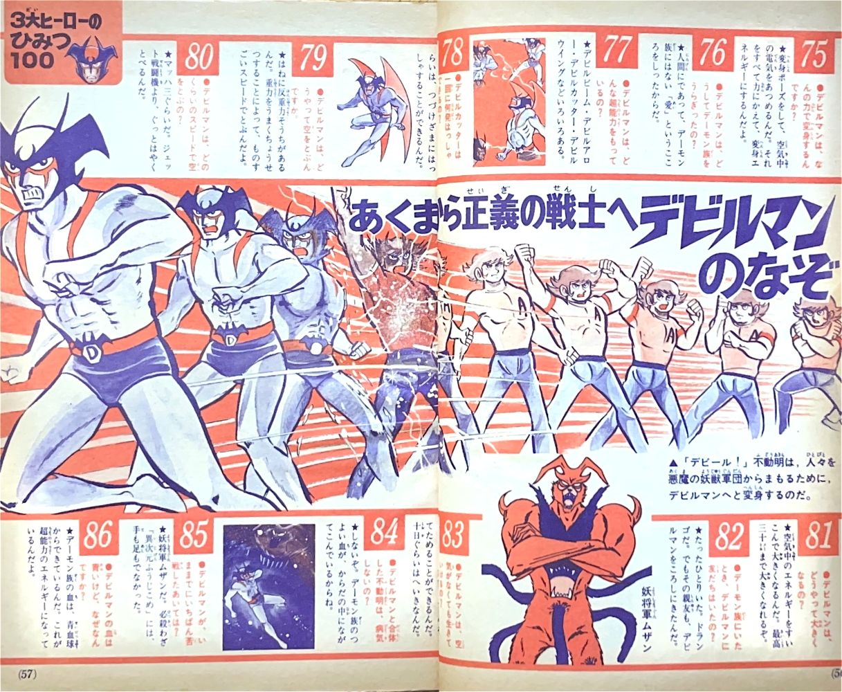 特集「3大ヒーローのひみつ100」 レインボーマン 1〜18, 45〜59 マジンガーZ 23〜44, 60〜74 デビルマン |