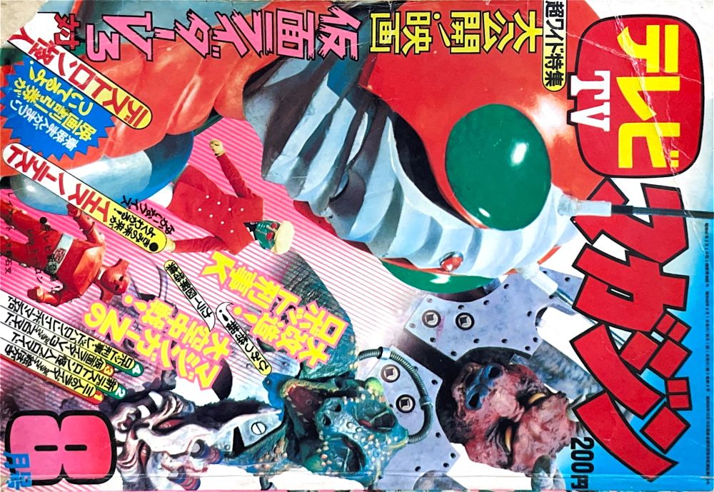 カラー特集「超ヒーロー大研究 デビルマン」6p4色 渡辺正美による6イラストが大迫力! 「きょうりゅうサイボーグ マシンザウラー」25p(カラーなし) 表紙にはゴジラ。マンガは他に真樹村正「どすこい!ロボの花」10p。特集は他にスパイダーマン,なぜかダブルライダー(1号と2号),映画ルパン三世「ルパン対銭形 エジプトの決戦」,そしてゴジラはブロマイド付。 |