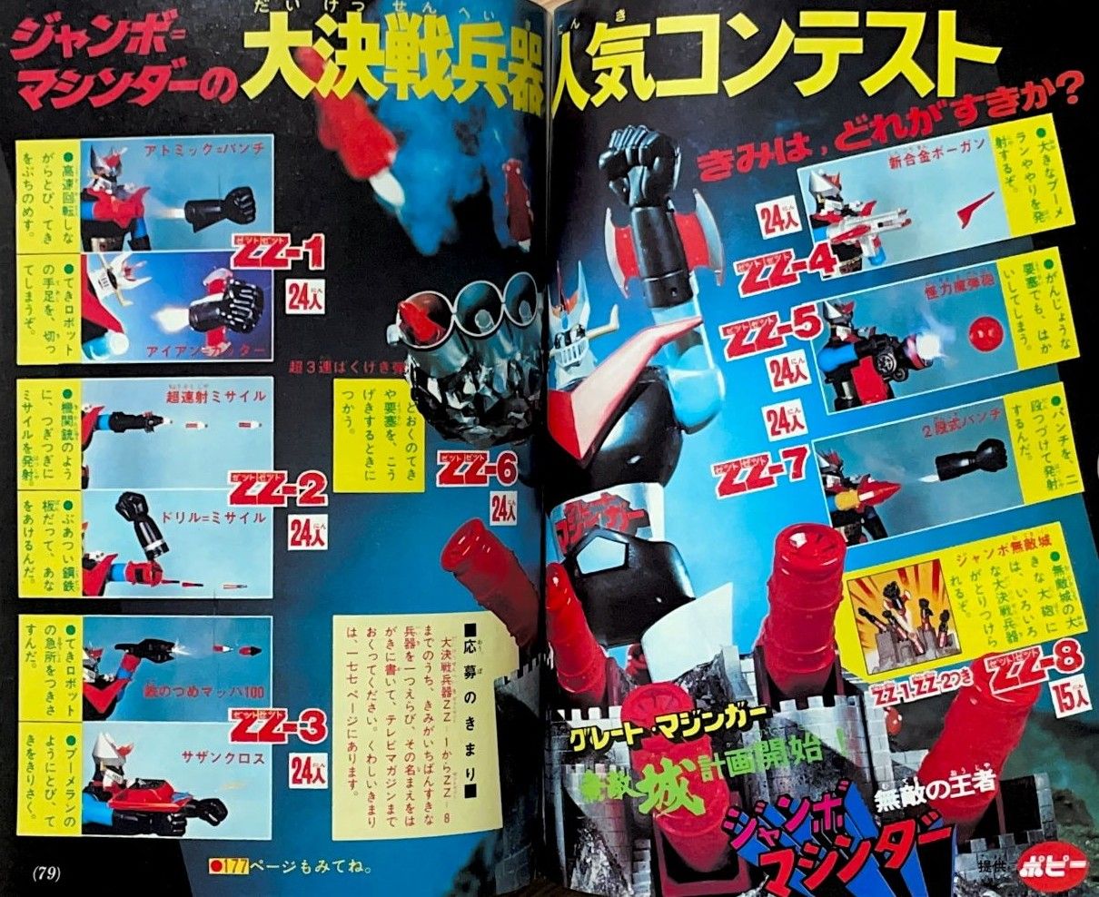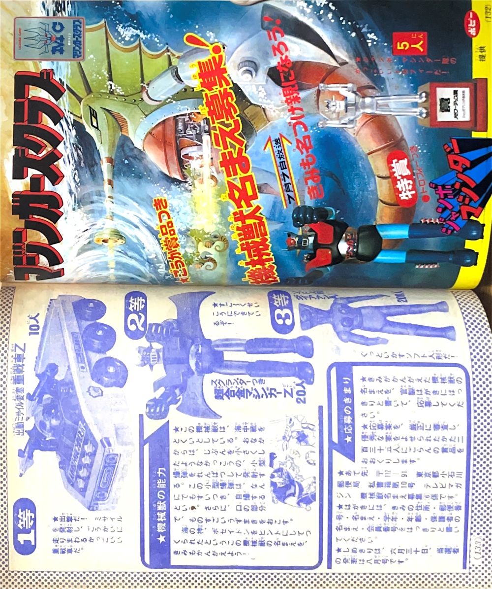 大図解特集「はじめてあかすマジンガーZそうじゅう法」2色9p 広告 タカラ「パンチキック」4色1p |
