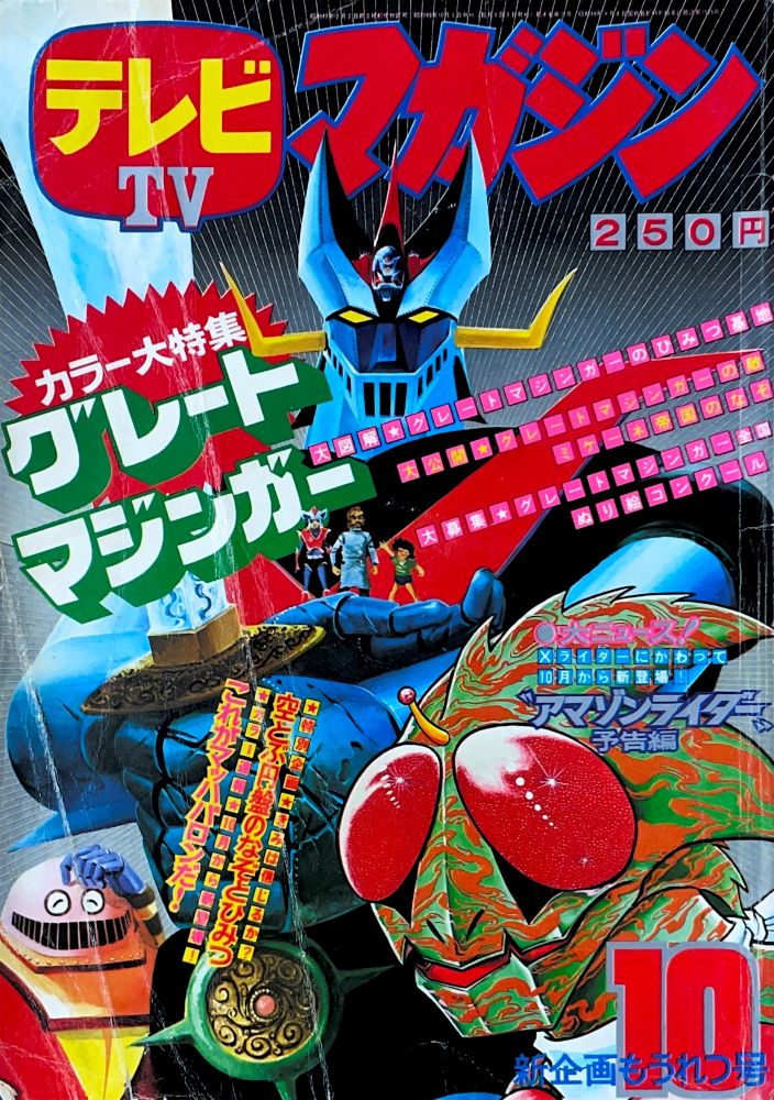 特 集「10月新番組 新ヒーロー歌のアルバム」マジンガーZ、キューティーハニー、ドロロンえん魔くん カラー図解「マジンガーZ完成のひみつ」4色5p 特 集「マジンガーZパイロットテスト 100の質問」18p(扉4色) 特 集「ボスののるロボットデザイン大発表!」4色1p マンガ「マジンガーZ」24p(扉4色)/機械鳥獣グレート=バードン,機械獣ウーラアP9 マンガ「キューティーハニー(岡崎優)」14p/ファイヤー=クロー |
