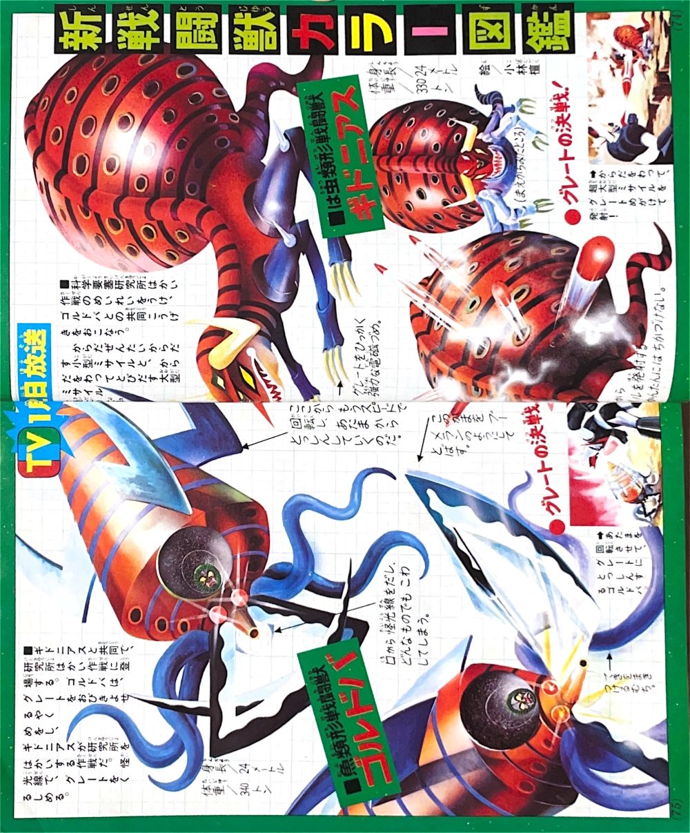 特 集「新ゲッターロボ合体のしくみ」 特 集「あの甲児がかえってきた マジンガーZ」 マンガ「ゲッターロボG」秋本シゲル 新連載・扉4色 マンガ「グレートマジンガー」今道英治 |