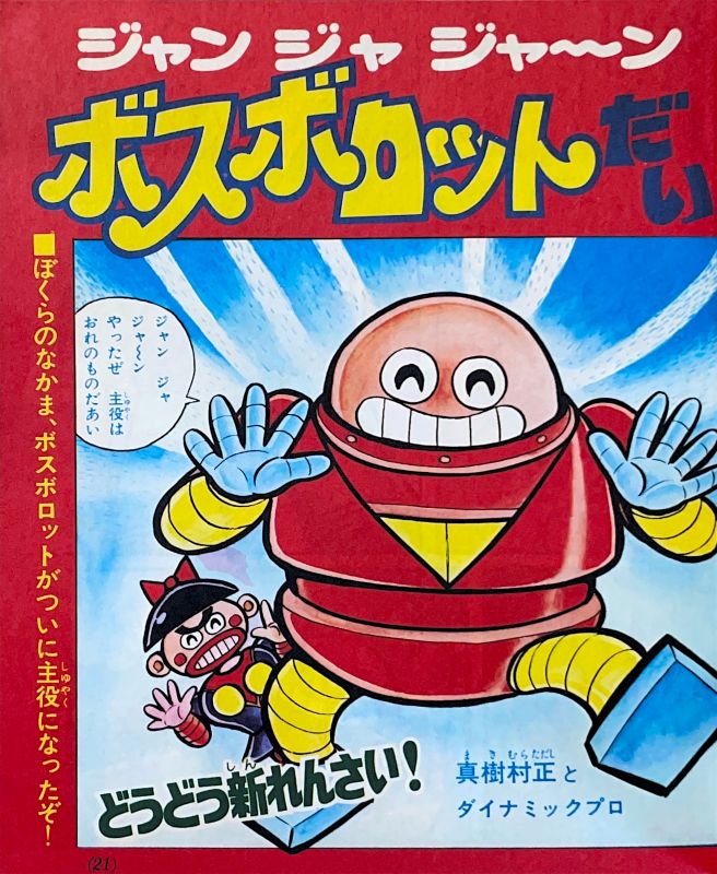 ピンナップ「グレートマジンガー対ゲッターロボG空中大激突!」 カラー特集「地獄大元帥の超戦力」4色7p カラー特集「宇宙円盤大戦争」4色5p マンガ「ボスボロットだい」(真樹村正)新連載オール4色8p マンガ「鋼鉄ジーグ」(永井豪・安田達矢)22p{扉4色) 記 事「マジンガーズクラブ」扉4色10p マンガ「宇宙円盤大戦争(前編)」(松本めぐむ)8p マンガ「グレート★マジンガー」(永井豪)16p マンガ「勇者ライディーン」(蛭田充)16p | |