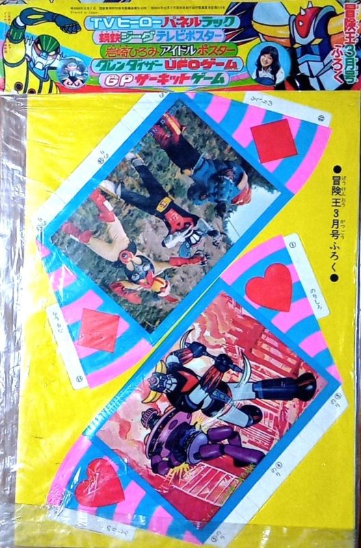 ○ふろく ●TVヒーローパネルラック ●鋼鉄ジーグ テレビポスター ●岩崎ひろみ アイドルポスター ●グレンダイザー UFOゲーム ●GPサーキットゲーム |