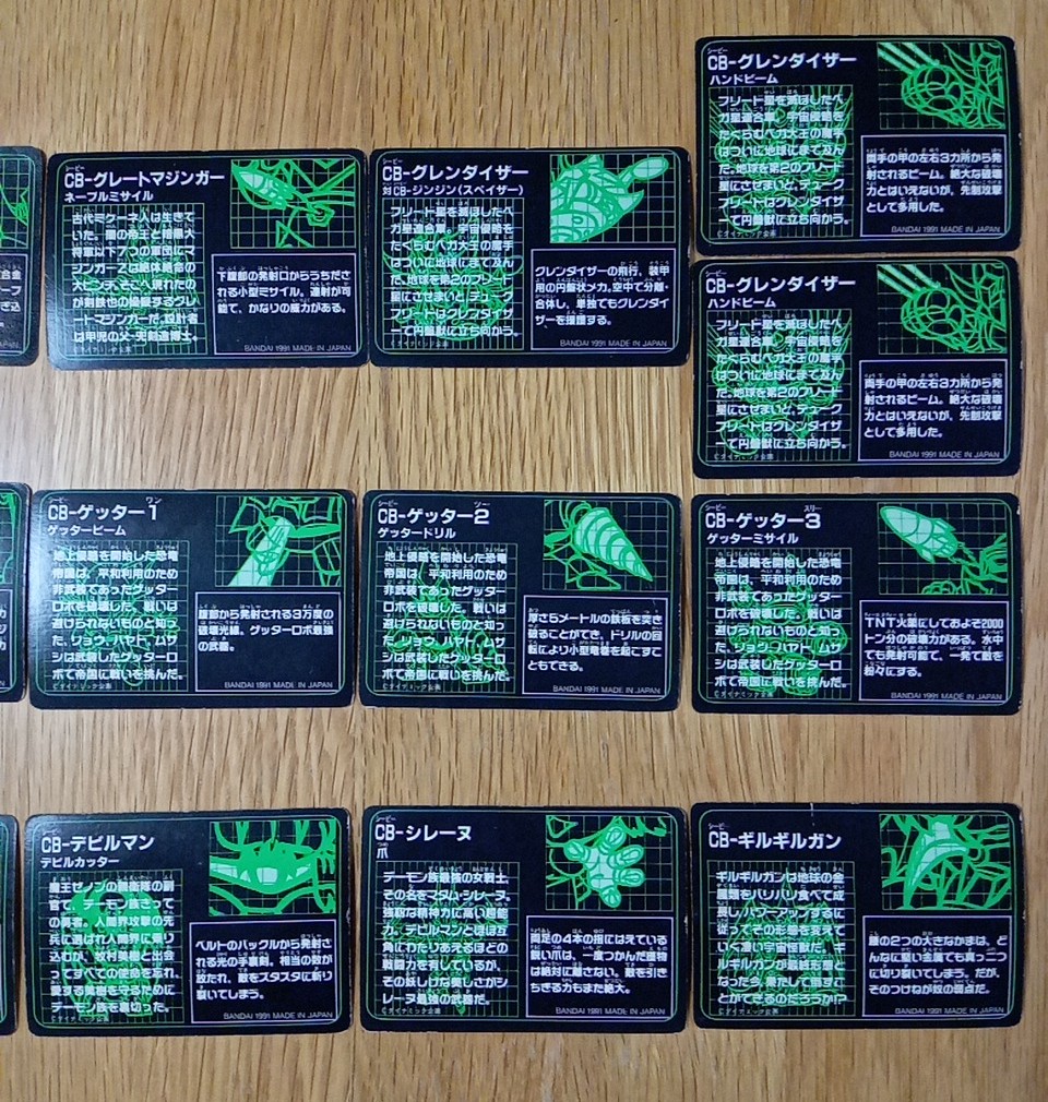 No.1 CB-マジンガーZ アイアンカッター 未 No.2 CB-マジンガーZ ブレストファイヤー No.3 CB-マジンガーZ 対CB-ベルガスV5 ロケットパンチ No.4 CB-グレートマジンガー マジンガーブレード(プリズム) No.5 CB-グレートマジンガー 対CB-オベリウス サンダーブレーク 未 No.6 CB-グレートマジンガー ネーブルミサイル No.7 CB-グレンダイザー 対CB-ジンジン スペイザー No.8 CB-グレンダイザー ダブルハーケン 未 No.9 CB-グレンダイザー ハンドビーム ✕2 No.10 CB-アフロダイA ミサイル No.11 CB-ダイアナンA スカーレットビーム ✕2 No.12 CB-ビューナスA 光子力ビーム No.13 CB-ゲッター1 ゲッタービーム No.14 CB-ゲッター2 ゲッタードリル No.15 CB-ゲッター3 ゲッターミサイル No.16 CB-ゲッタードラゴン ダブルトマホーク(プリズム) No.17 CB-ゲッターライガー ライガーミサイル No.18 CB-ゲッターポセイドン フィンガーネット No.19 CB-デビルマン デビルカッター No.20 CB-シレーヌ 爪 No.21 CB-ギルギルガン |