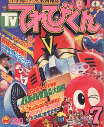 ![]() | このころはダイナミック度は全然低くなってるけど,本号は「ゴッドマジンガー」を扱っている。表紙プラス4ページの特集。スペシャルポスターもついている。絵は渡辺正美。そういえばゴッドマジンガーって,てんとう虫コミックだったなぁ。ちなみに表紙右はバイオマン。 |