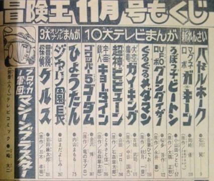 マンガ 「アステカイザー」石川賢(別冊ふろく) マンガ「グロイザーX」桜多吾作(最終話) マンガ「キングボンバ」永井豪 |