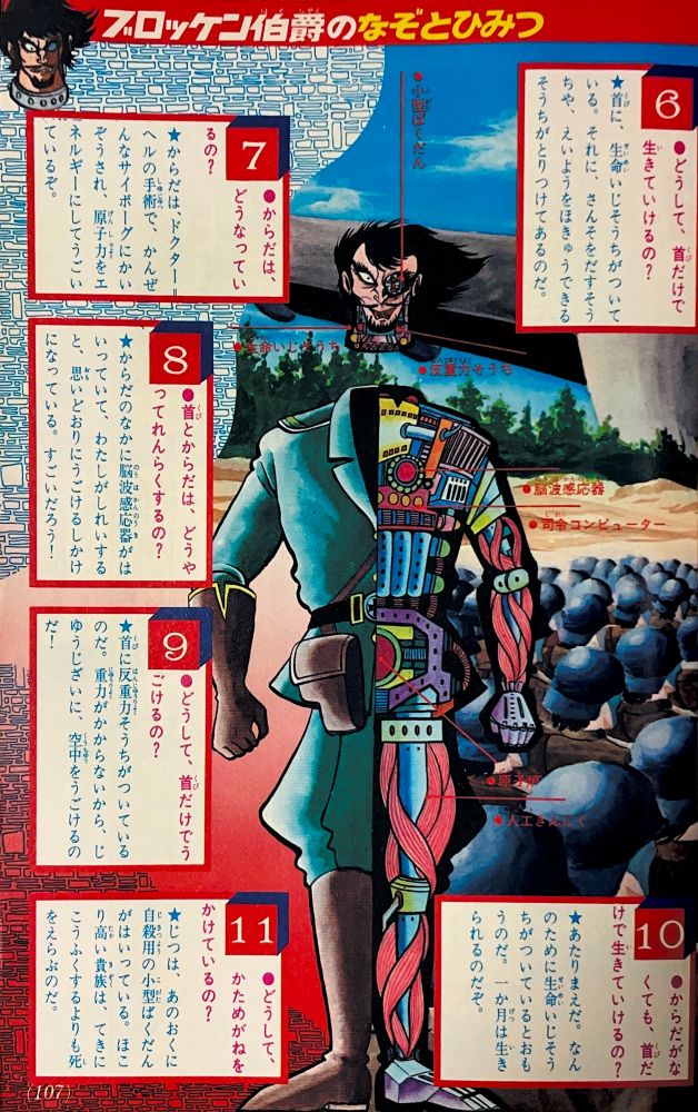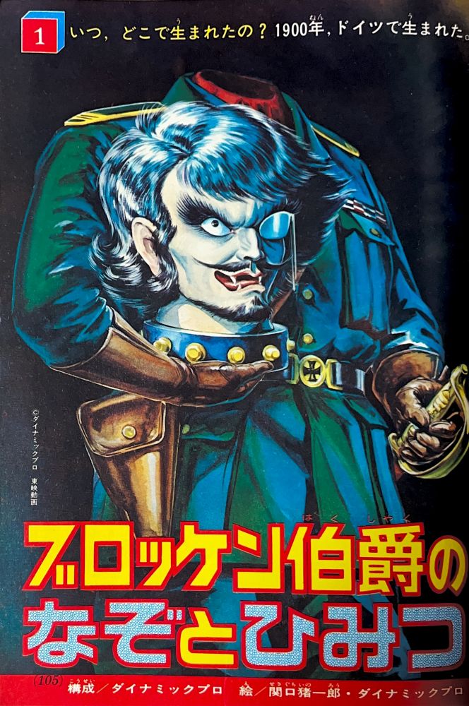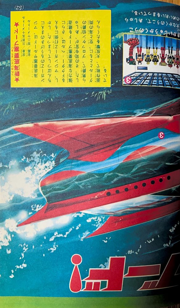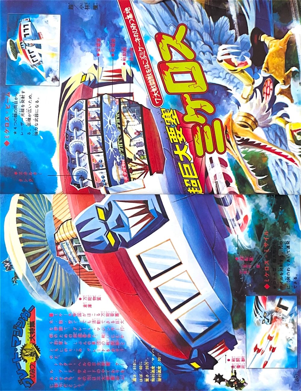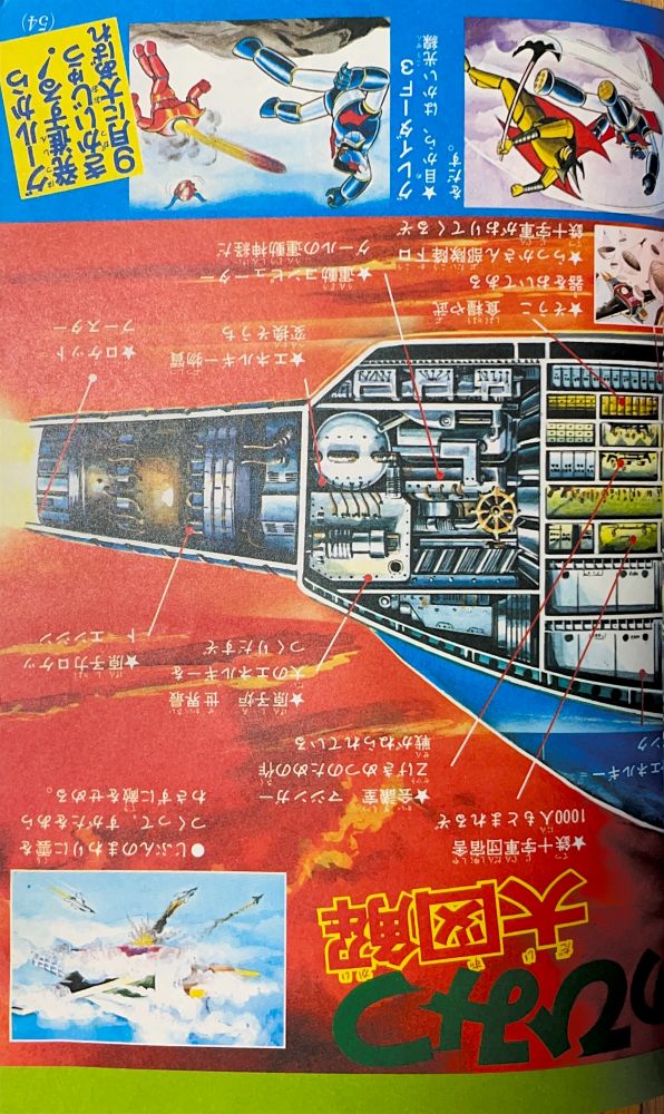 特 集 4色5p マジンガーZ大図解特集 ドクター=ヘルの2大要塞大公開!(表紙1p) 大進撃!新海底要塞ブード!(2p) 悪魔の飛行要 グールのひみつ 大図解(2p) 構成/ダイナミックプロ,絵/関口猪一郎 |