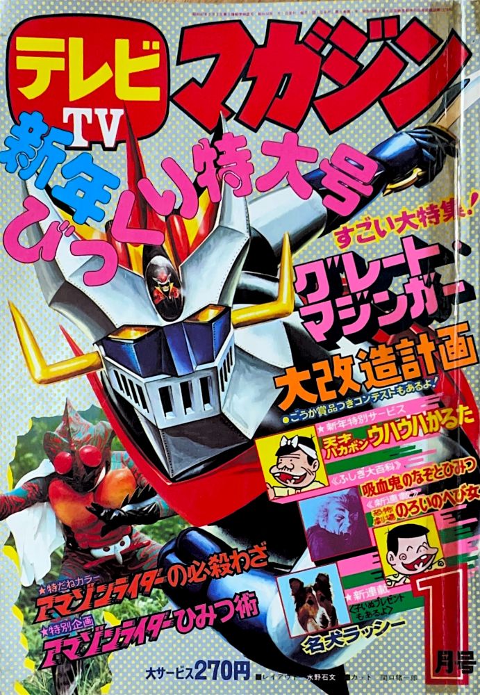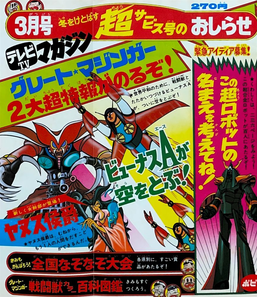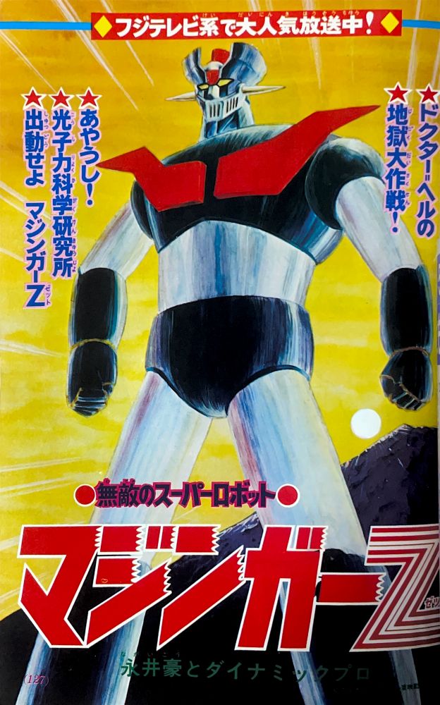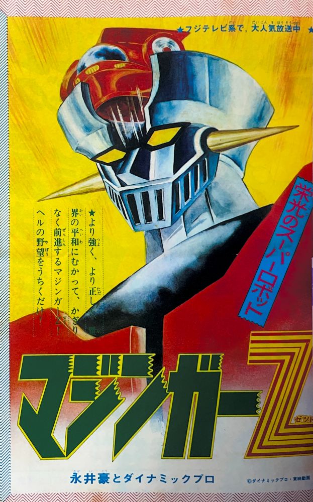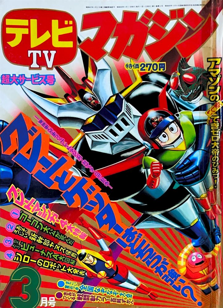 巻頭付録 マジンガーZ特大ポスター (カレンダーつき) ふろく人気ものカルタ 特 集マジンガーZの最新情報100!! マンガ天保革「マジンガーZ」扉4色 |
