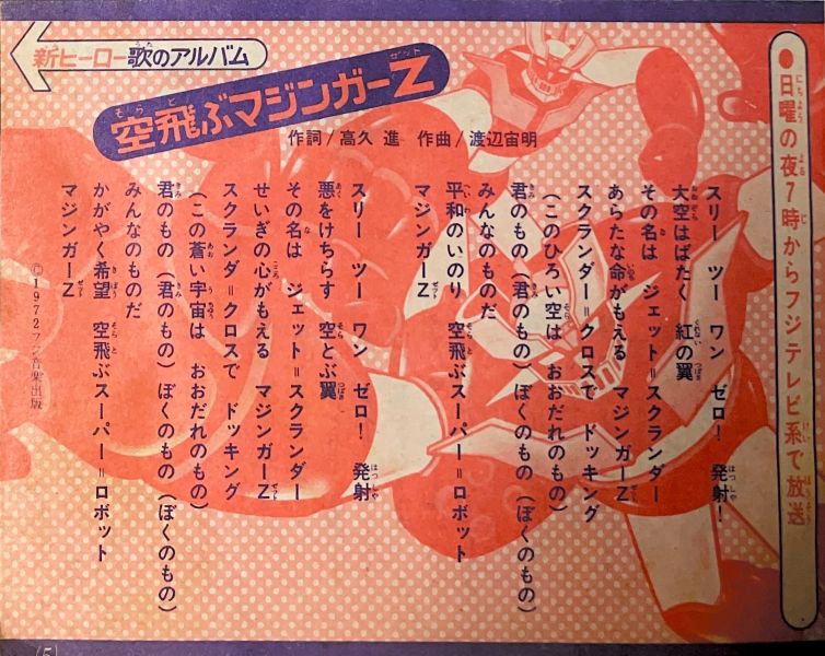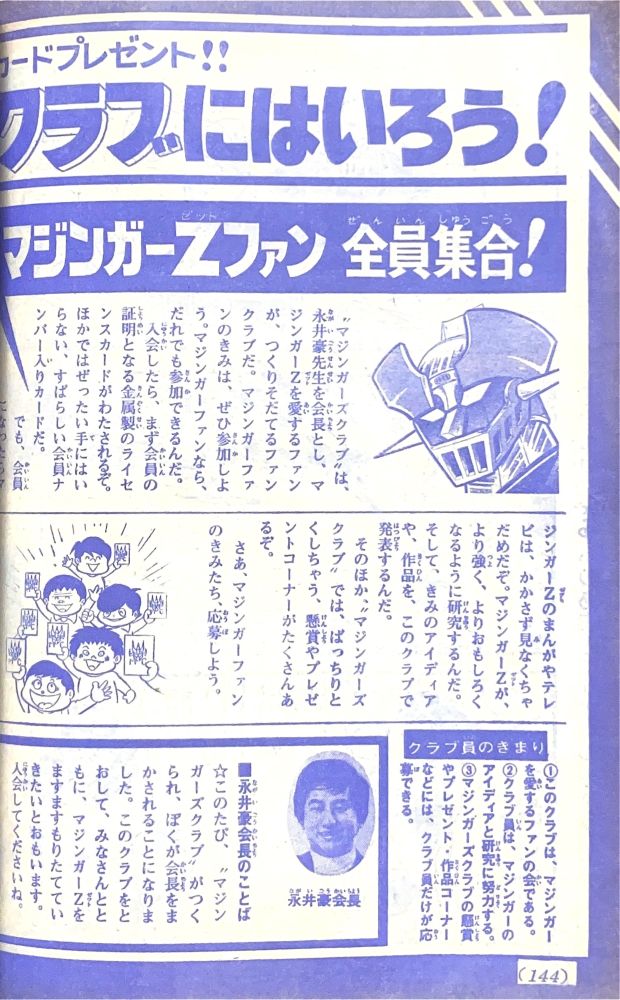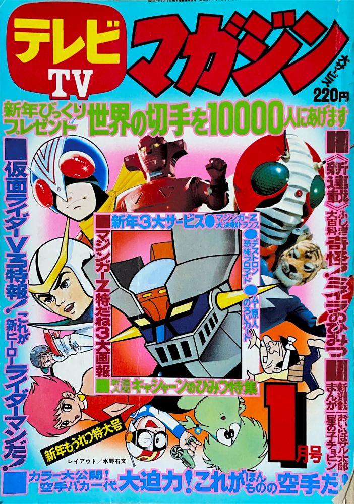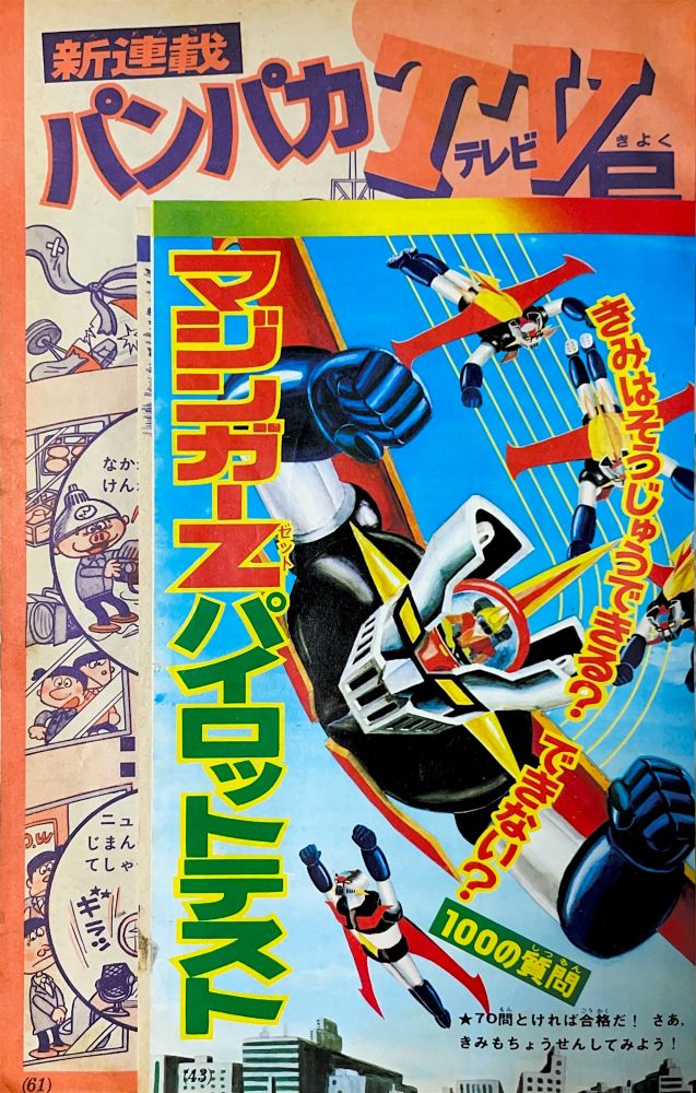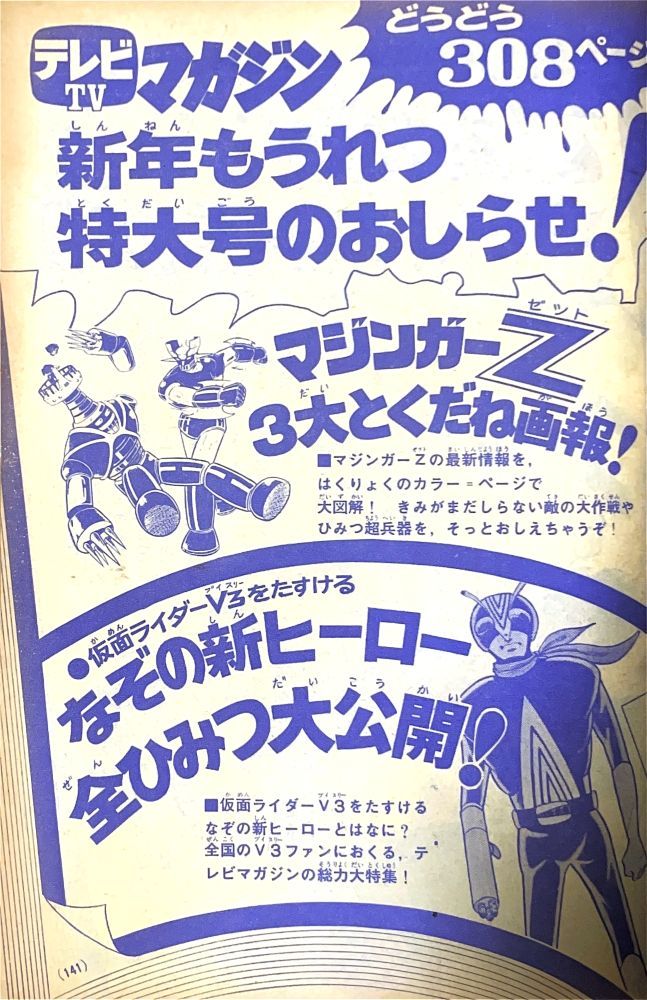 巻頭付録 マジンガーZ特大ポスター (カレンダーつき) ふろく人気ものカルタ 特 集マジンガーZの最新情報100!! マンガ天保革「マジンガーZ」扉4色 |