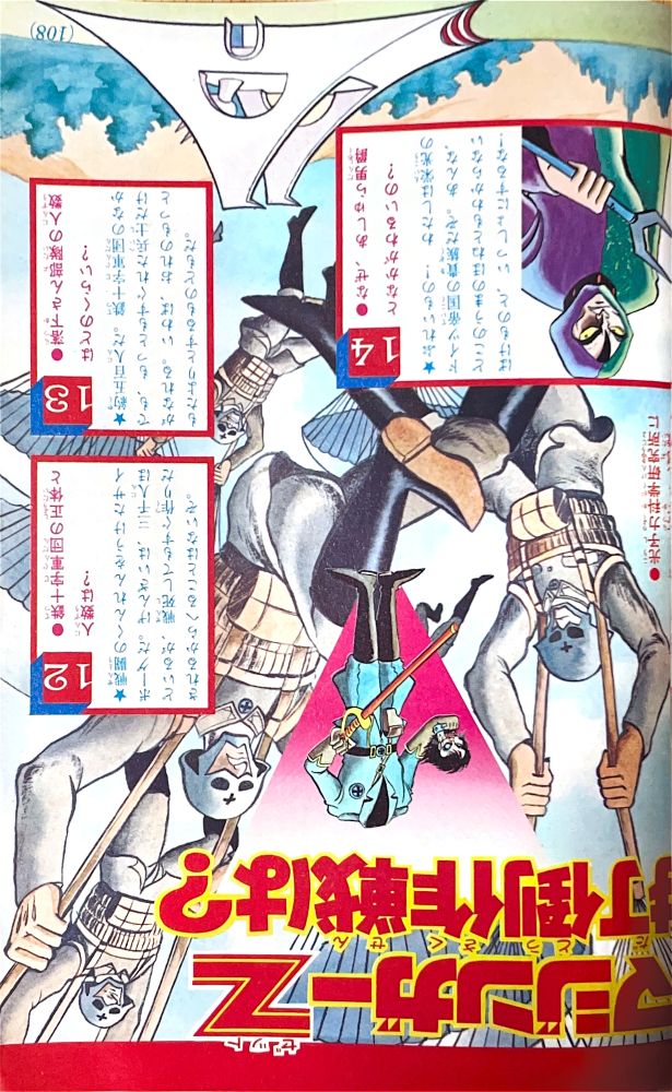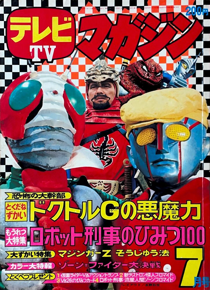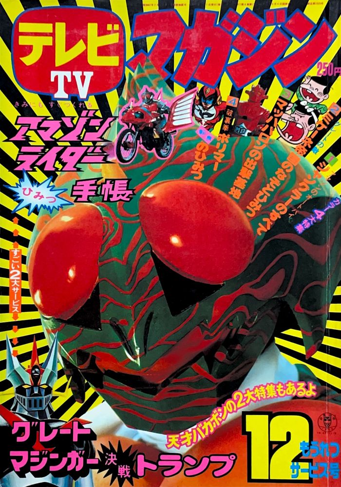 マンガ「ハゼドン」板井れんたろう マンガ「仮面ライダーV3」石森プロ マンガ「天才バカボン」赤塚不二夫 マンガ「流星人間ゾーン」新宅よしみつ(新連載) マンガ「レインボーマン」あだち充 マンガ「白獅子仮面」古城武司(新連載) マンガ「ロボット刑事」石森プロ(新連載) マンガ「バビル二世」松本めぐむ マンガ「電人Xマン」桑田次郎 マンガ「デビルマン」風子瞳12p(ドリムーン)最終話 |