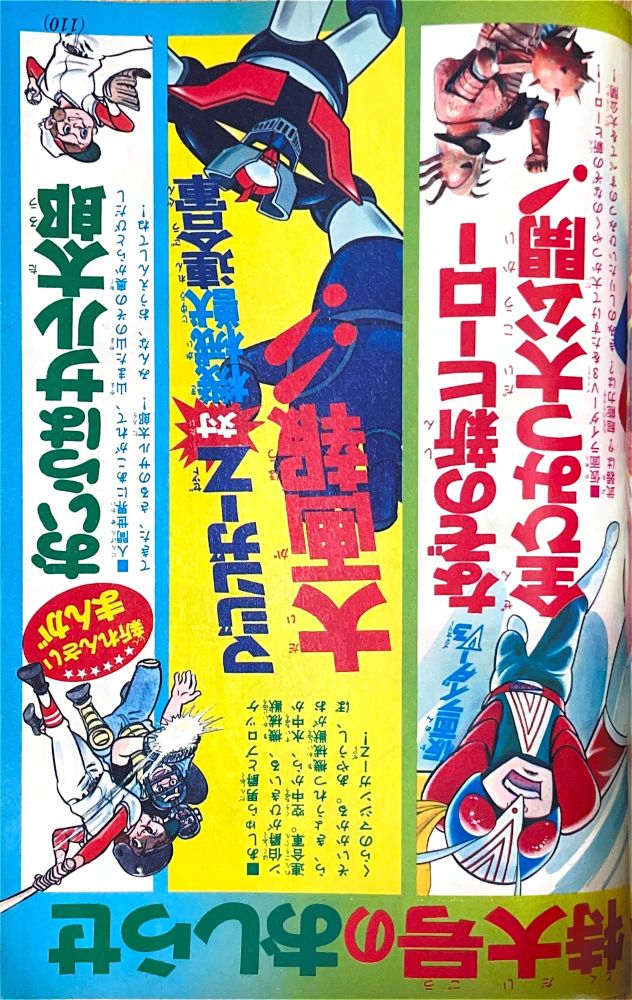 綴 込「マジンガーZ絵はがき」 綴 込「マジンガーZお面」 マンガ「マジンガーZ」(桜多吾作)新連載 マンガ「キューティーハニー」(石川賢)新連載 |