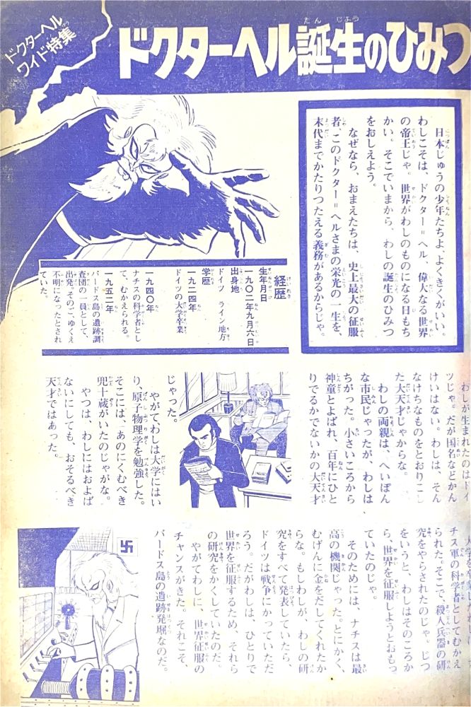 特集「デビルマン悪魔のひみつ」2色4p ふろく「怪人・魔人超能力かるた」 |
