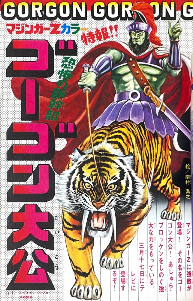 特 集「グレートマジンガーの新しい敵ヤヌス侯爵」 特 集「ゲッターロボ 恐竜帝国になぐりこめ!!」 特 集「ゴーゴン大公 血の遺言」 マンガ「ゲッターロボ」蛭田充 マンガ「グレートマジンガー」天保革 |