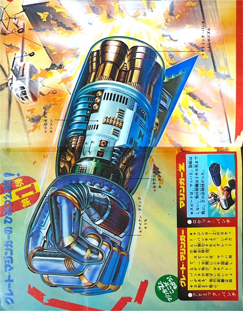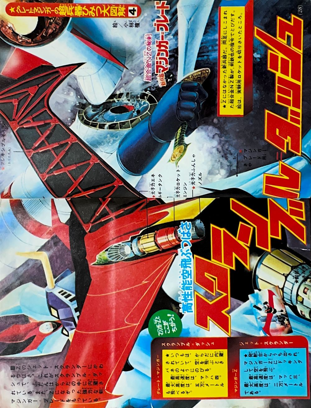 大図解特集「はじめてあかすマジンガーZそうじゅう法」2色9p 広告 タカラ「パンチキック」4色1p |