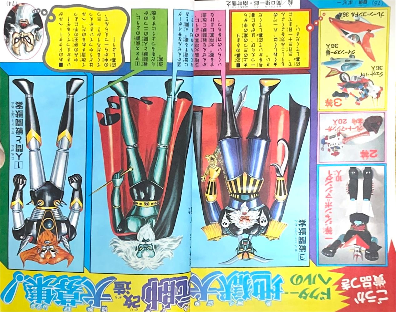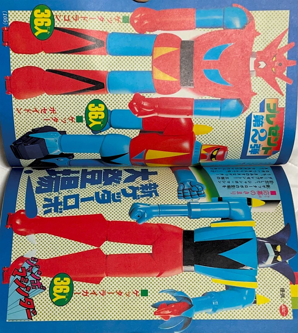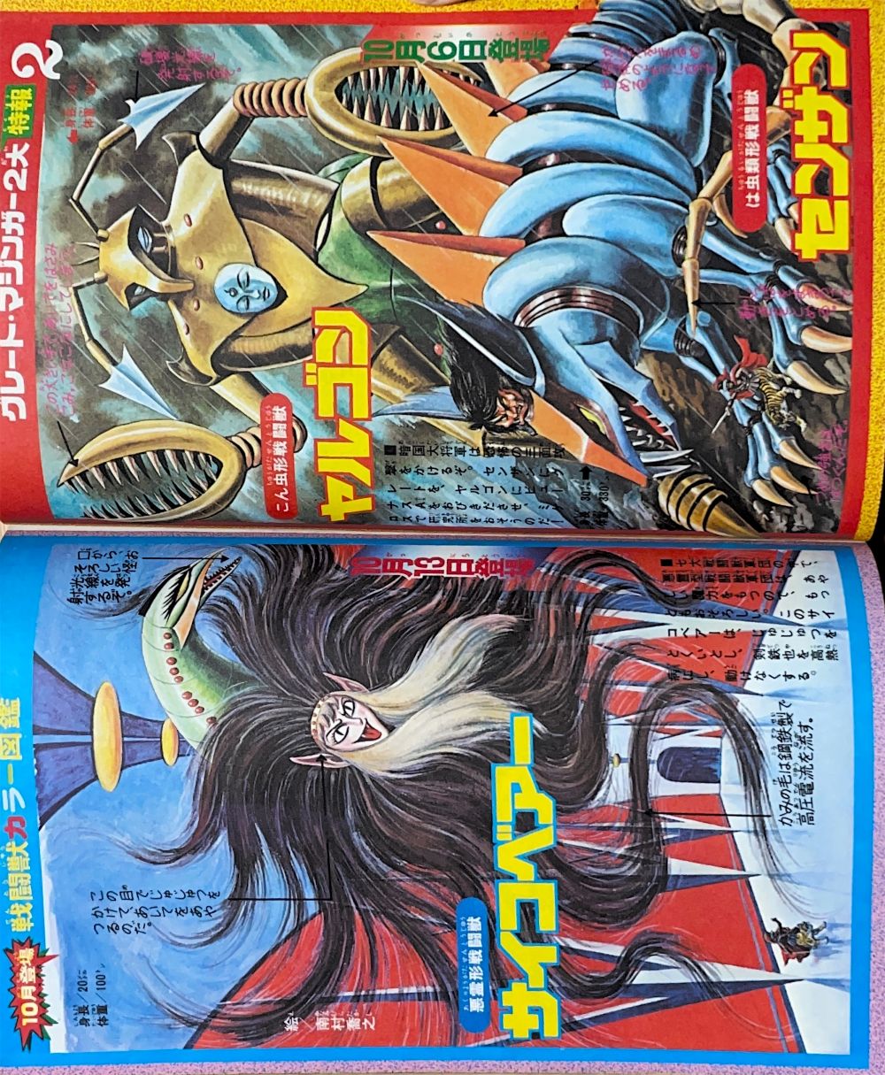 特 集マジンガーZ 95機械獣総登場! 特 集マジンガーZ ピグマン子爵の正体とは!? 特 集ゲッターロボの敵 恐竜帝国をあばく! マンガ「ゲッターロボ」蛭田充 マンガ「マジンガーZ」天保革 扉4色 |