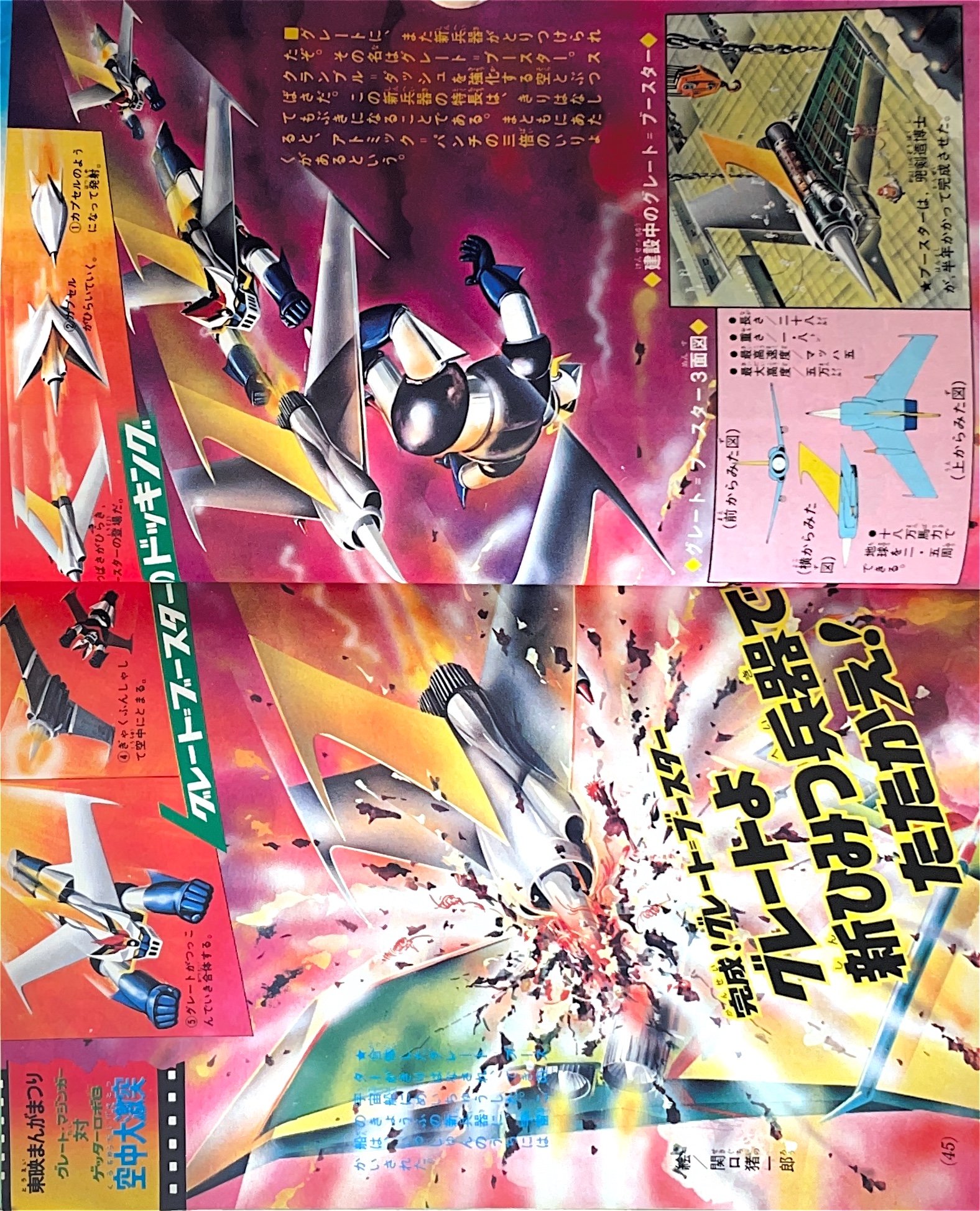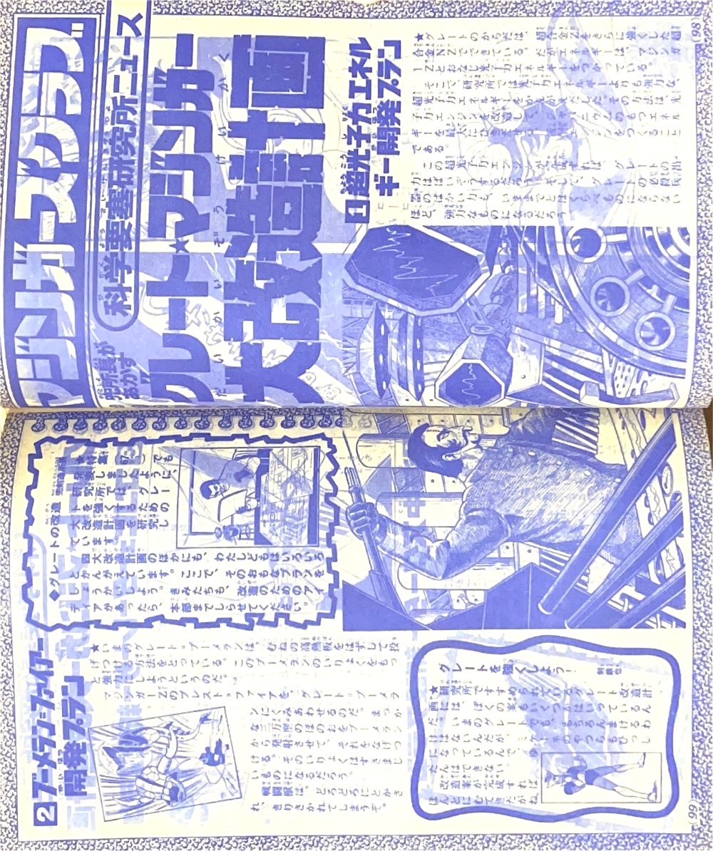 特 集「新ゲッターロボ合体のしくみ」 特 集「あの甲児がかえってきた マジンガーZ」 マンガ「ゲッターロボG」秋本シゲル 新連載・扉4色 マンガ「グレートマジンガー」今道英治 |