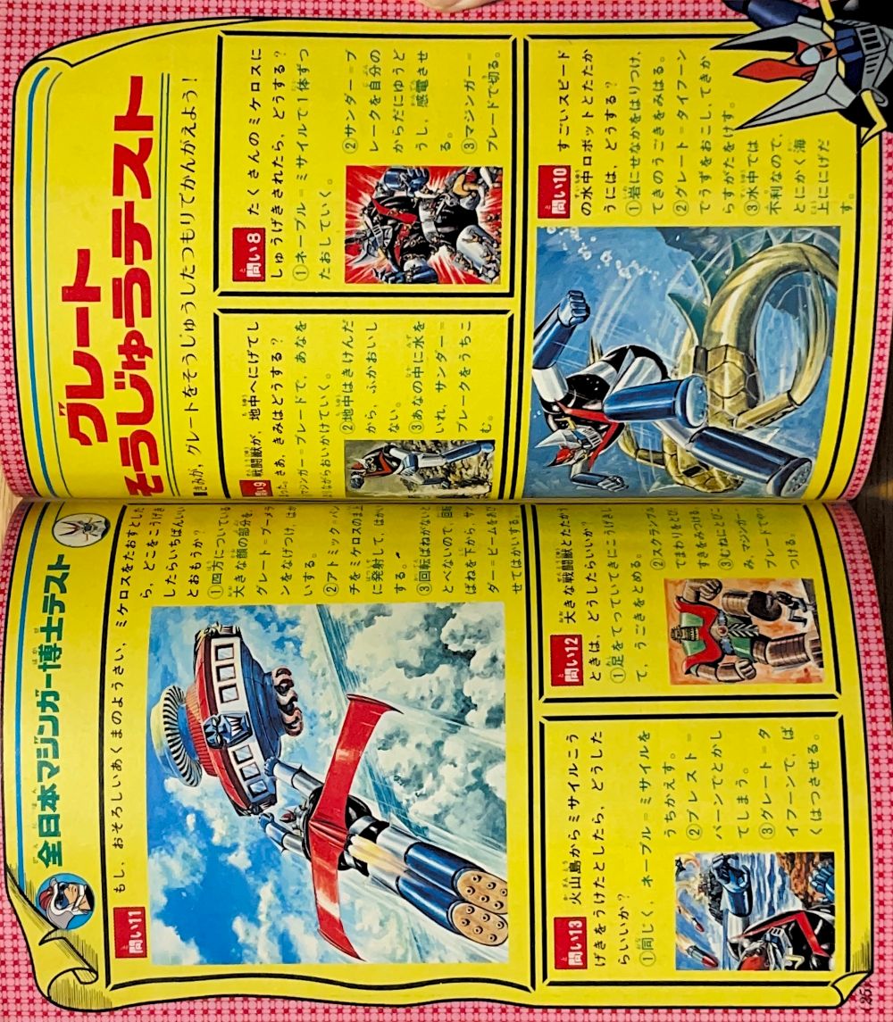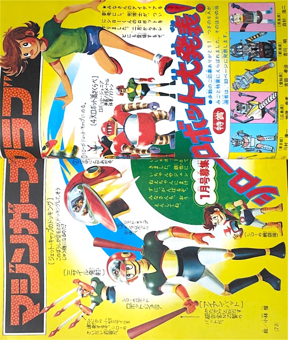 年賀状「グレートマジンガー」 特 集「グレートマジンガー剣鉄也大特訓」 特 集「ゲッターロボ・パイロットテスト」 マンガ「ゲッターロボ」蛭田充 マンガ「グレートマジンガー」今道英治 |