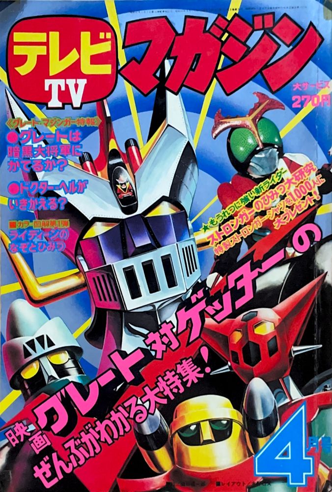 特 集「新ゲッターロボついに完成」 特 集「グレイト・マジンガーに新兵器ができた!」 マンガ「ゲッターロボ」蛭田充 マンガ「グレートマジンガー」天保革 |