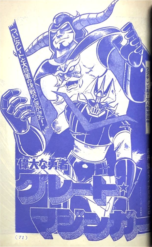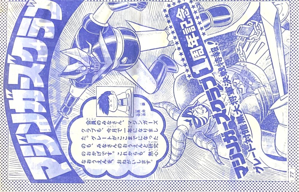 特 集「死闘!グレート対ミケーネ」 マンガ「ゲッターロボG」秋本シゲル 扉4色 マンガ「グレートマジンガー」今道英治 |