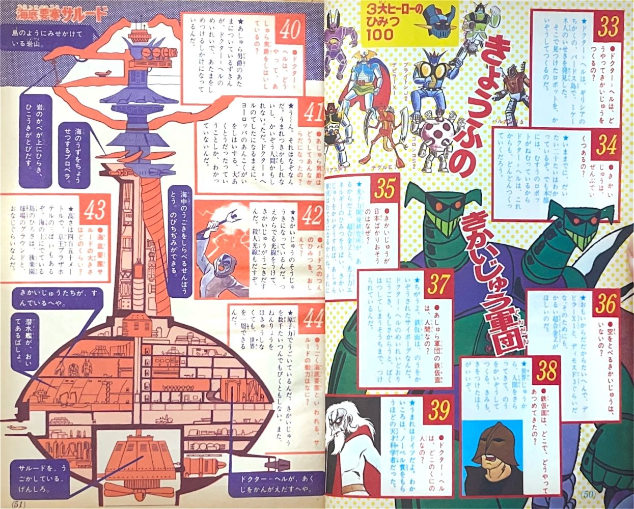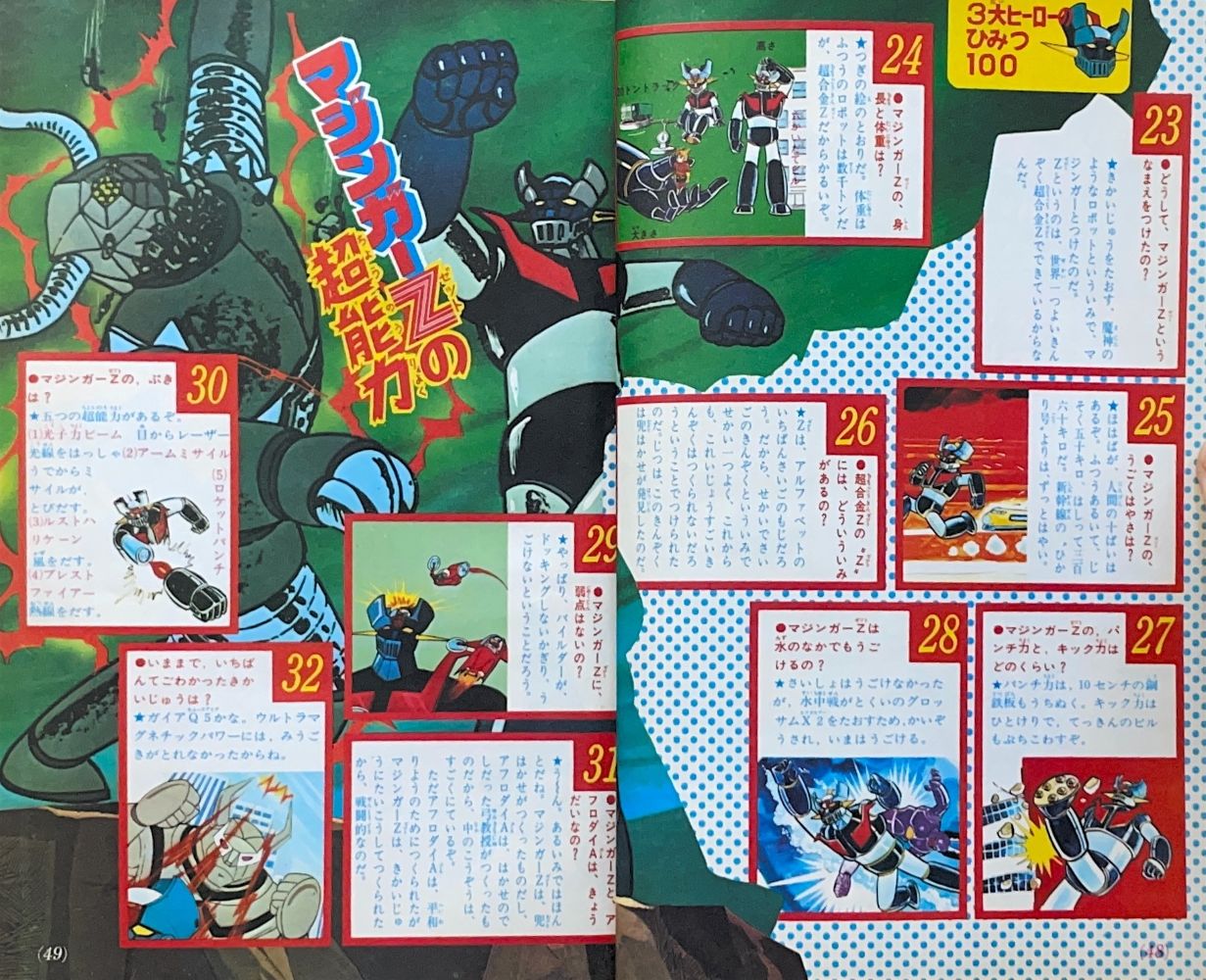 特集「3大ヒーローのひみつ100」 レインボーマン 1〜18, 45〜59 マジンガーZ 23〜44, 60〜74 デビルマン |