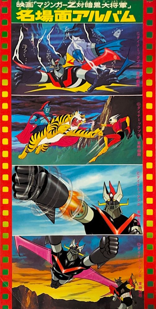 立体スタンド 図解ブロマイド ジャンボポスター 全機械獣114体せいぞろい 決戦年表 映画「マジンガーZ対暗黒大将軍」物語 8p マジンガーZひみつ集 24p マジンガーZ人物集 16p 全機械獣ものしり大百科 34p マジンガーZ用語辞典 16p(各1/3ページ) マジンガーZ「誕生編」96p |