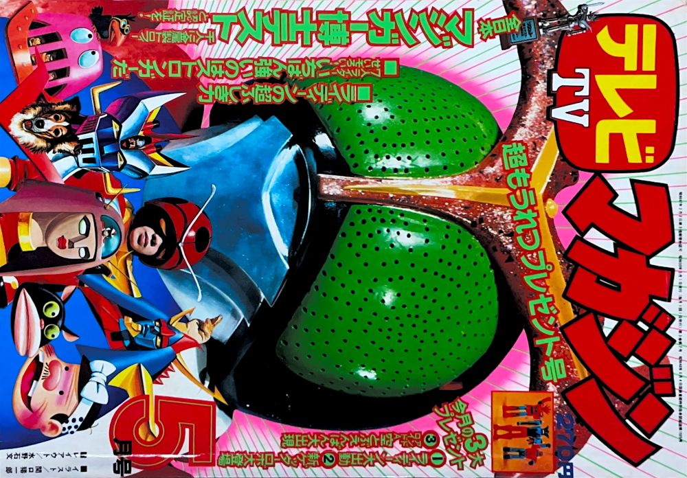 時刻表つきマジンガーZミニポスター マンガ「マジンガーZ」(永井豪)新連載・扉4色32p/機械獣ゴウキューンU5 マンガ「キューティーハニー」(岡崎優)新連載13p/ブラック=クロー もくじにマジンガーZと兜甲児と冷奴のミニイラストあり。 |