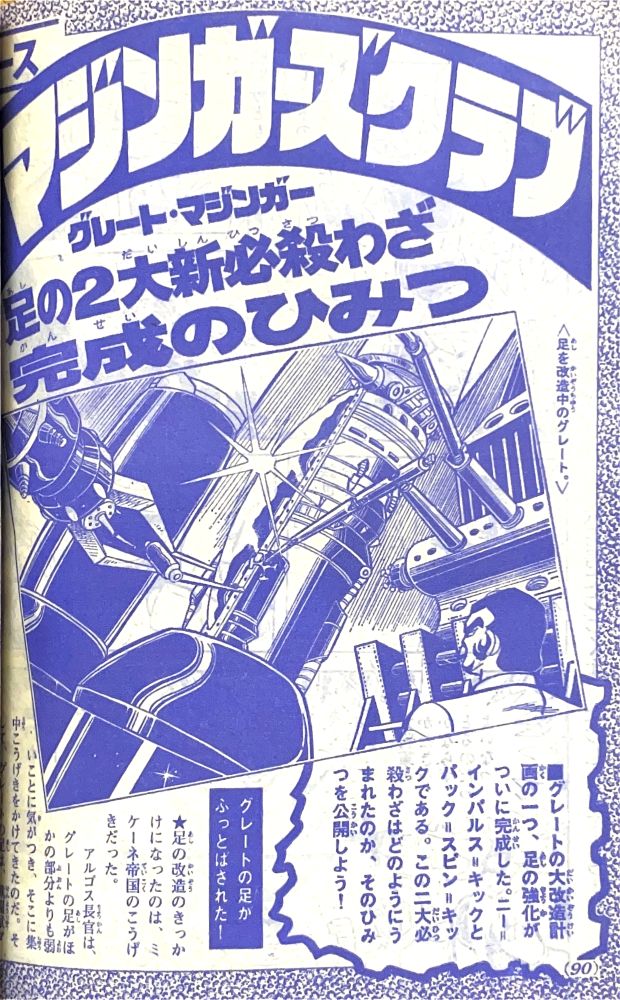 特 集「これがグレートの弱点だ!!」 特 集「改造完成ゲッターロボ」 マンガ「ゲッターロボ」蛭田充 マンガ「グレートマジンガー」今道英治! |