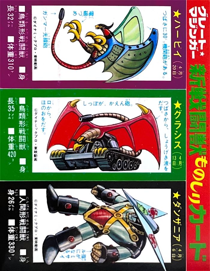 1. 無敵ロボ・トライダーG7(2p) 2. マジンガーZ(2p) 3. グレート・マジンガー(2p) 4. UFOロボ・グレンダイザー(2p) |