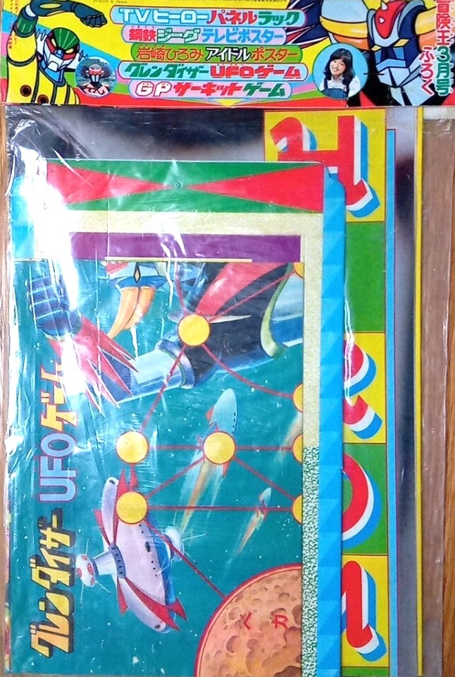 ○ふろく ●TVヒーローパネルラック ●鋼鉄ジーグ テレビポスター ●岩崎ひろみ アイドルポスター ●グレンダイザー UFOゲーム ●GPサーキットゲーム |
